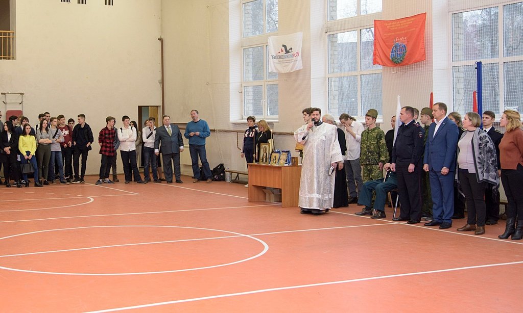 8 ноября в Гидрометеорологическом техникуме г. Балашихи состоялся волейбольный турнир памяти сотрудников МВД, погибших при исполнении служебного долга. Перед началом соревнования по приглашению организаторов турнира клирики храма во имя Новомучеников и исповедников Церкви Русской мкр. Кучино протоиерей Сергий Каплин и диакон Андрей Владимиров совершили заупокойную литию по погибшим, после чего отец Андрей обратился к собравшимся с пастырским словом.