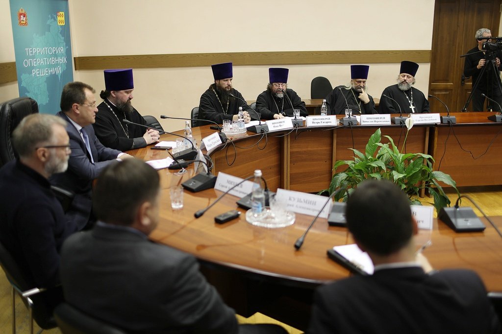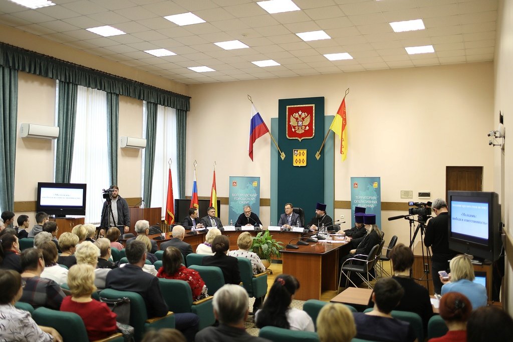 22 ноября в Ногинске прошел круглый стол «Молодежь: свобода и ответственность», организованный Богородским благочинием при поддержке администрации Богородского городского округа. В мероприятии, которое провел благочинный церквей Богородского округа протоиерей Марк Ермолаев, приняли участие: политолог Сергей Михеев, глава Богородского городского округа Игорь Сухин, председатель Совета депутатов городского округа Электросталь Валерий Кузьмин, помощник депутата Московской областной думы Григорий Грибанов, настоятель Иоанно-Предтеченского храма села Ивановское протоиерей Игорь Гагарин, настоятель Никольского храма села Макарово протоиерей Вячеслав Перевезенцев, настоятель Вознесенского храма Электростали протоиерей Сергий Поддубный, ответственный за работу с молодежью в благочинии протоиерей Олег Волков. Был затронут широкий круг вопросов: молодежь и современное медиа пространство, необходимость нравственного и патриотического воспитания, молодежное служение в Церкви. На встрече присутствовали работники образования, сотрудники администрации, молодежь, в том числе старшеклассники православной гимназии имени священномученика Константина Богородского.