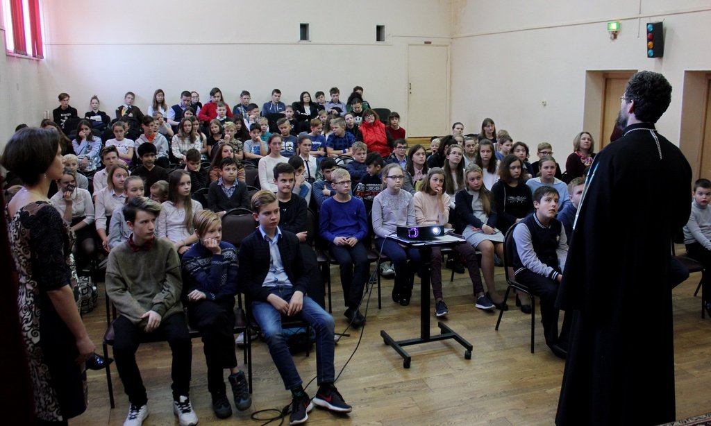 В тот же день в средней школе № 17 клирик Почаевского храма священник Вячеслав Власов провел беседу с учащимися 4-7 классов. Воспитанники воскресной школы храма разыграли басню «Стрекоза и муравей».