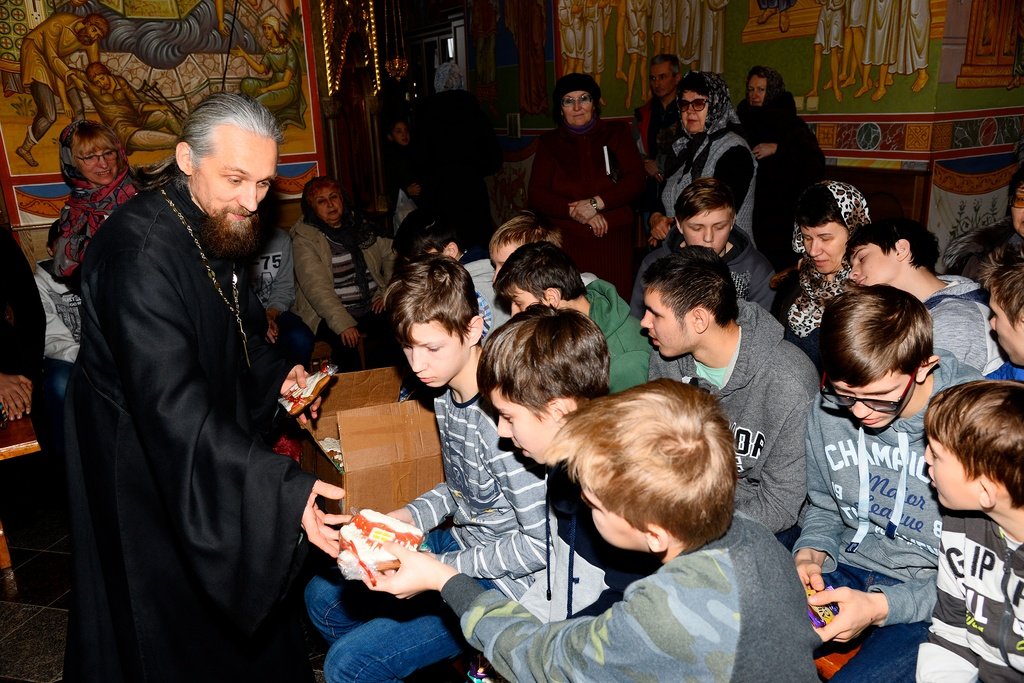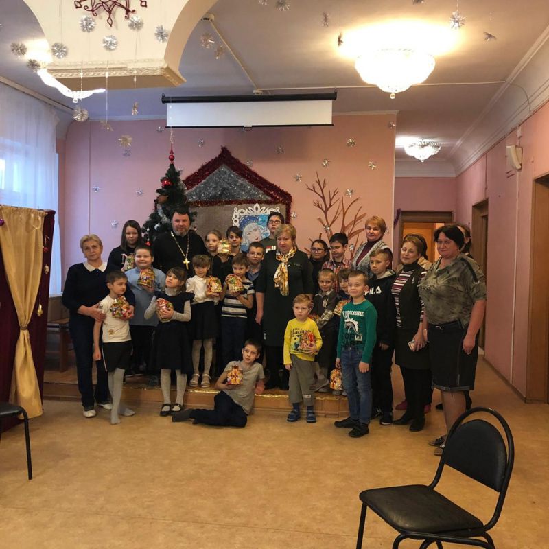 13 января воспитанники школы-интерната «Доверие» посетили Сергиевский храм деревни Алмазово, где посмотрели спектакль «12 месяцев», подготовленный воспитанниками воскресной школы храма. С поздравительным словом перед ребятами выступил настоятель храма священник Илия Плешаков. Все дети получили подарки.