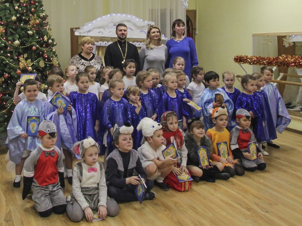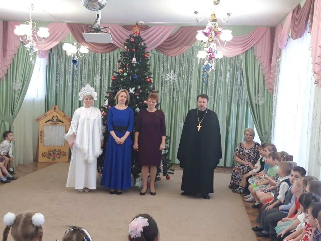 11 января воспитанники воскресной школы храма прп. Серафима Саровского г. Щелково вместе с настоятелем храма священником Виталием Крикотой посетили детский сад № 18 «Росинка». Ребята показали спектакль, а отец Виталий поздравил всех с Рождеством Христовым.