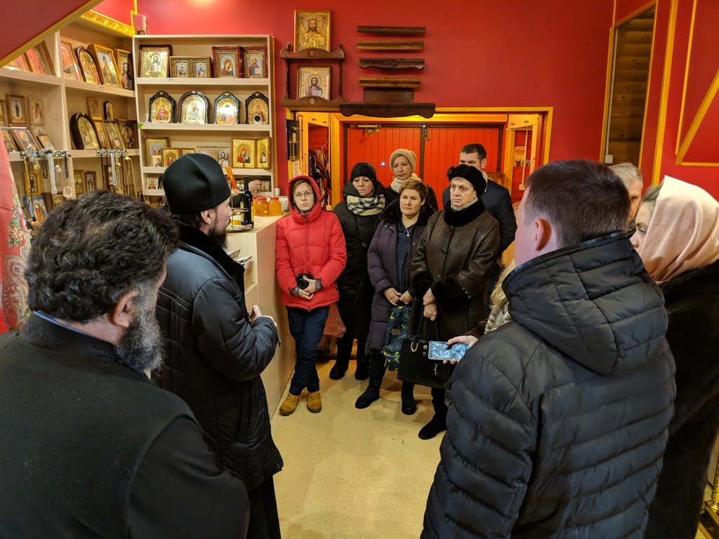 13 февраля благочинный церквей Шатурского церковного округа священник Владислав Решетников провел экскурсию по строящемуся Никольскому храму г. Шатуры для представителей общественной палаты г.о. Шатура. В ходе встречи отец Владислав рассказал гостям об истории храмового комплекса, а также о ходе строительства Никольского храма.
