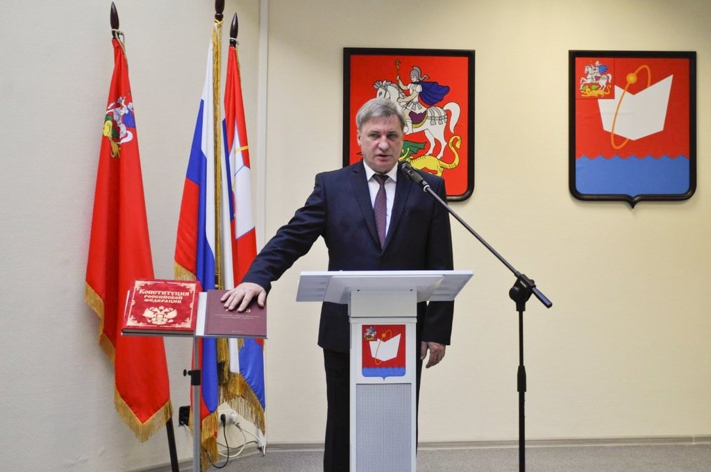 18 февраля состоялась торжественная церемония вступления в должность главы городского округа Фрязино Константина Бочарова. Его поздравили заместитель начальника главного управления территориальной политики Московской области Артем Федосеев, депутат Государственной думы Владимир Кононов, председатель совета депутатов г.о. Фрязино Константин Тихонов и благочинный Щелковского церковного округа протоиерей Андрей Ковальчук.