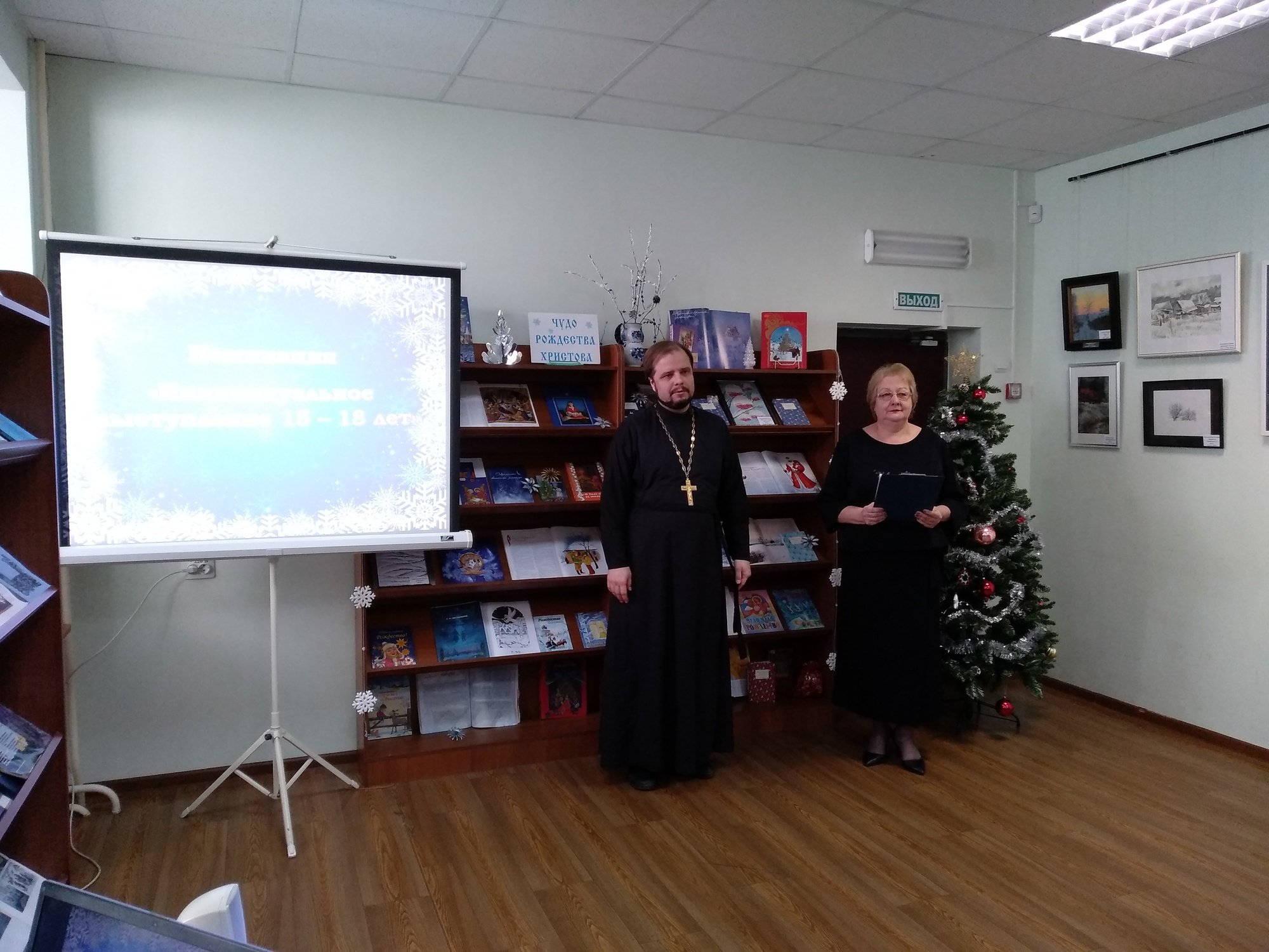 18 февраля в читальном зале Щелковской библиотеки семейного чтения состоялось награждение победителей окружного конкурса чтецов «Святочный рассказ. От Рождества до Крещения». Церемонию открыла директор Щелковской центральной библиотеки Е. В. Ильенко. Победителей поздравили клирик Троицкого собора г. Щелково священник Евгений Трушин, представители литературного объединения «Слово» и Щелковского театра. Для участников и гостей конкурса прозвучали музыкальные произведения в исполнении юных певцов вокальной студии «Гармония» центра творческого развития и гуманитарного образования «Романтик».