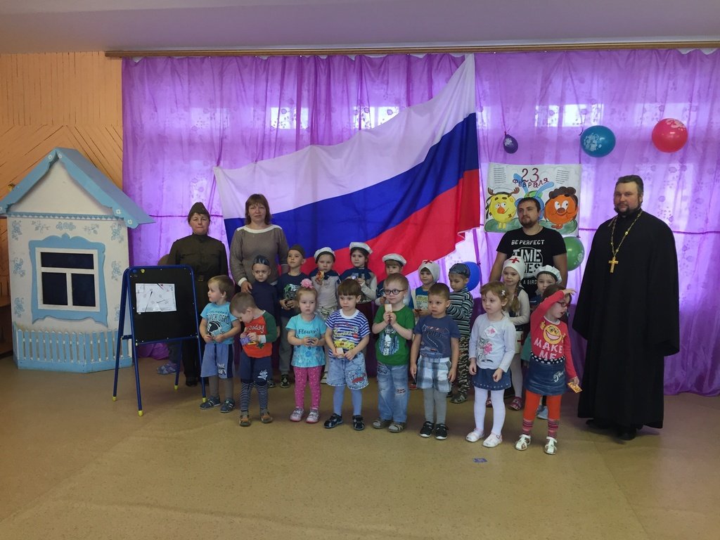 22 февраля в детском саду №31 села Середниково прошел утренник, на который был приглашен настоятель храма иконы Божией Матери «Нечаянная Радость» поселка Радовицкий священник Алексий Цыганков.
