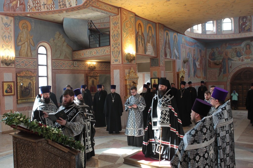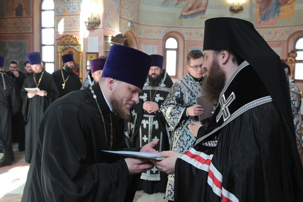 3 апреля в Троицком храме г. Реутова состоялся третий выпуск Курсов повышения квалификации священнослужителей Московской епархии, действующих при Коломенской духовной семинарии. 3-я сессия курсов проводилась для священнослужителей Балашихинского и Люберецкого благочиний на базе Троицкого храма. В этот день ректор Коломенской духовной семинарии епископ Зарайский Константин совершил Литургию Преждеосвященных Даров в Троицком храме г. Реутова. Его Преосвященству сослужили благочинный Балашихинского церковного округа и настоятель храма протоиерей Димитрий Мурзюков, заведующий курсами повышения квалификации священнослужителей протоиерей Максим Максимов, благочинный Люберецкого церковного округа священник Вячеслав Новак, благочинный Павлово-Посадского церковного округа, преподаватель курсов протоиерей Александр Хомяк, клирики Балашихинского и Люберецкого благочиний. По окончании богослужения Владыка Константин обратился к собравшимся с архипастырским словом. Двум клирикам Балашихинского благочиния епископ Константин вручил епархиальные награды: настоятелю Преображенского храма мкр. Саввино г.о. Балашиха протоиерею Виталию Кулешову, в связи с 50-летием со дня рождения, медаль «За жертвенные труды» III степени, а клирику Казанского храма г. Реутова протодиакону Вячеславу Кучеруку, в связи с 80-летием со дня рождения, медаль «За усердное служение» I степени.
