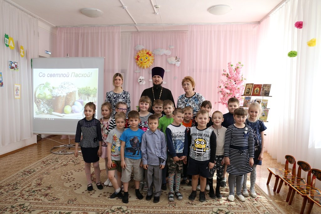 29 апреля в целях приобщения дошкольников к народной культуре в детском саду комбинированного вида №26 городского округа Орехово-Зуево прошел праздник «Пасхальный перезвон». С поздравительным словом к ребятам и сотрудникам обратился ответственный за религиозное образование и катехизацию в Орехово-Зуевском благочинии, настоятель Никольского храма г. Орехово-Зуево священник Петр Туря.