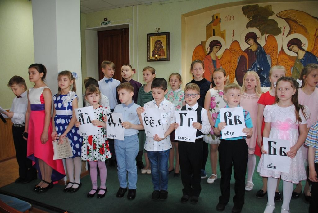 Сначала учащиеся сделали доклады на тему «Святые Кирилл и Мефодий – создатели славянской азбуки». Затем прошел концерт для родителей, в заключение которого благочинный церквей Щелковского округа протоиерей Андрей Ковальчук поздравил воспитанников школы с окончанием занятий. После этого в Троицком соборе перед иконами святых царственных страстотерпцев учащиеся спели тропарь, кондак и величание, а также возложили цветы к образам царя Николая и цесаревича Алексия.