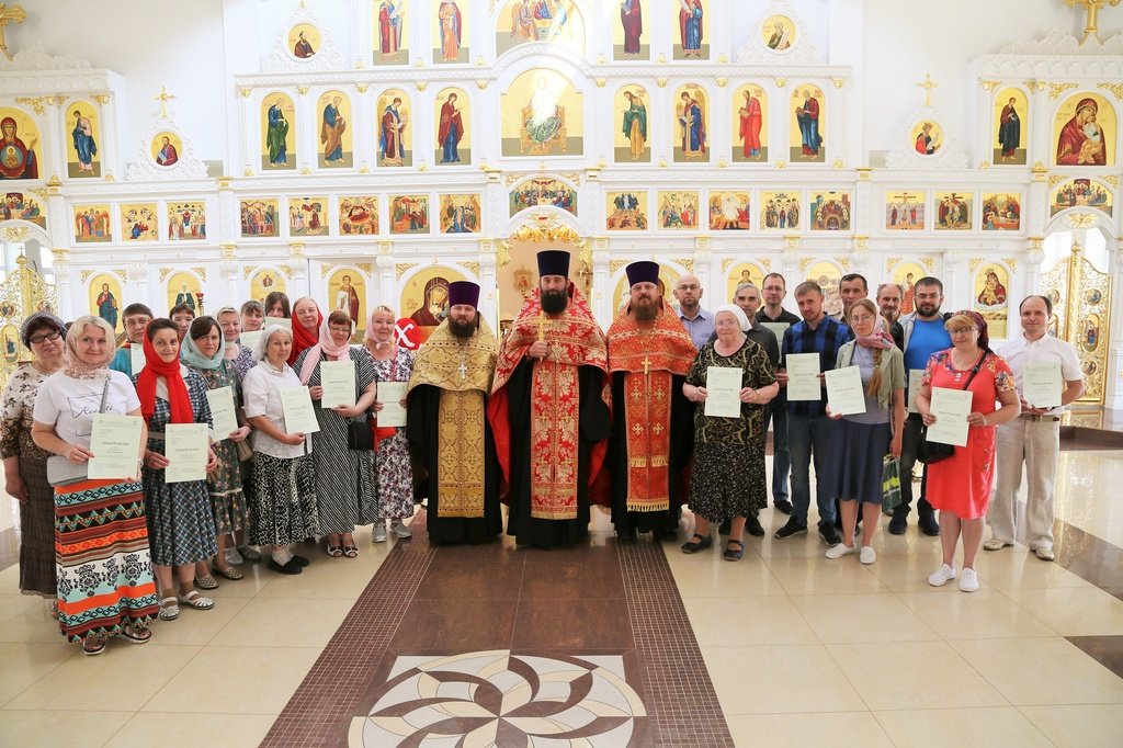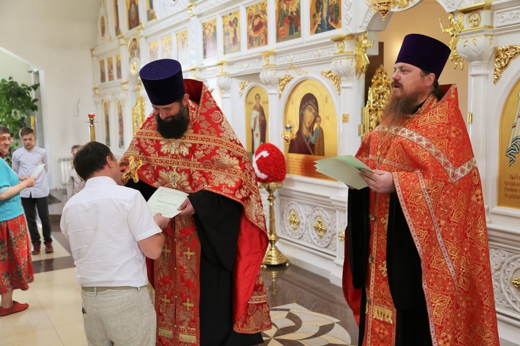 2 июня в храме Всех святых, в земле Русской просиявших, г. Электрогорска прошел выпускной акт слушателей Павлово-Посадского отделения Библейско-богословских курсов имени прп. Сергия Радонежского. Благодарственный молебен совершил благочинный Павлово-Посадского церковного округа протоиерей Александр Хомяк в сослужении ответственного за Павлово-Посадское отделение ББК протоиерея Димитрия Марухина и настоятеля храма протоиерея Александра Мельничука. Успешно завершившие обучение слушатели получили свидетельства об окончании курсов. С напутственным словом к выпускникам обратился благочинный Павлово-Посадского церковного округа протоиерей Александр Хомяк.
