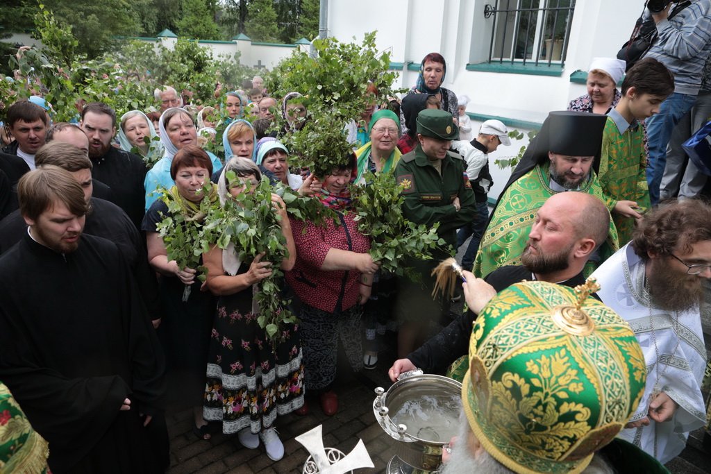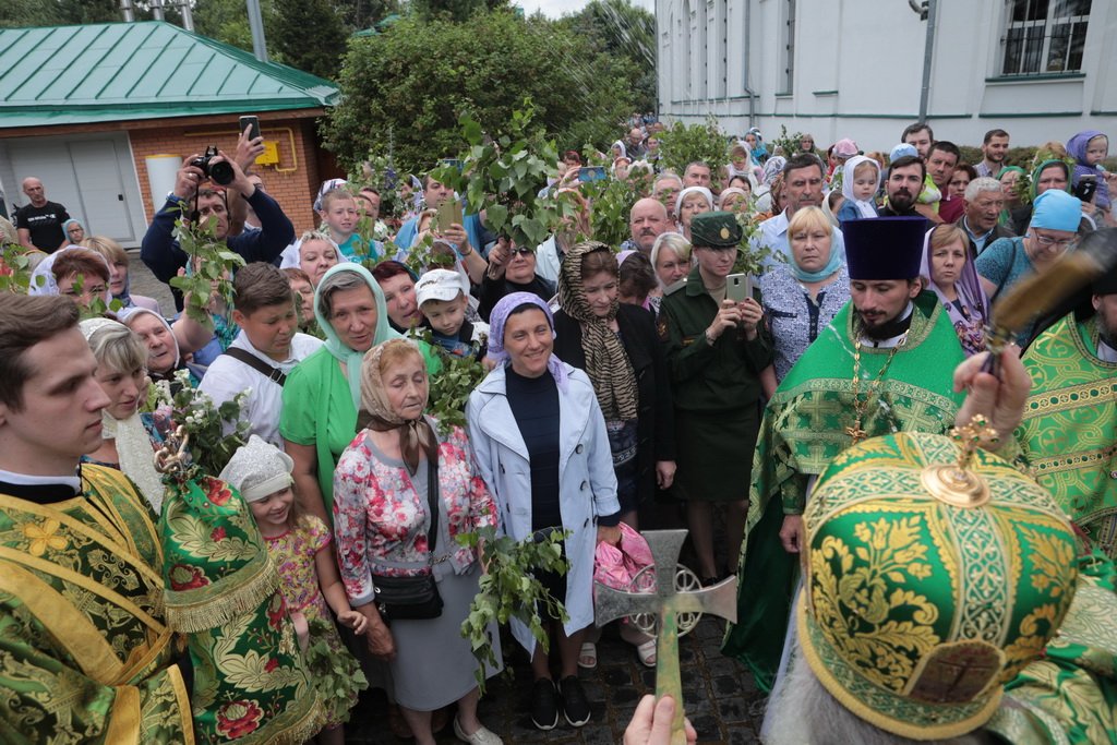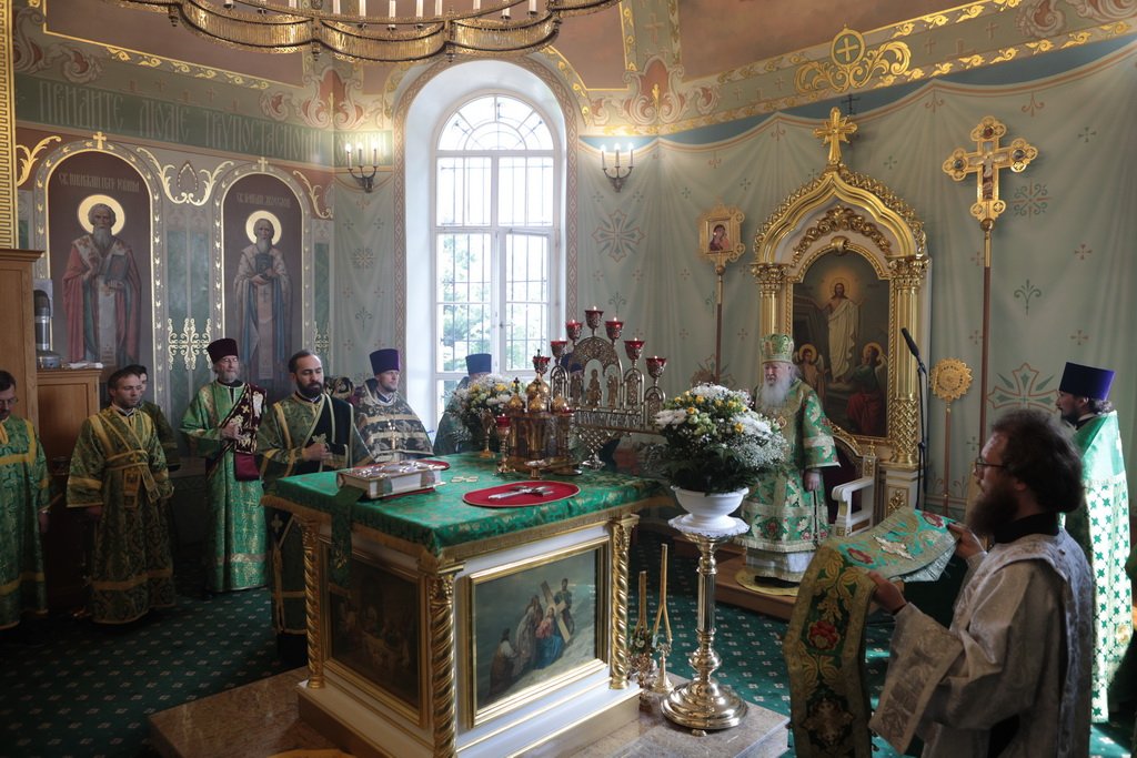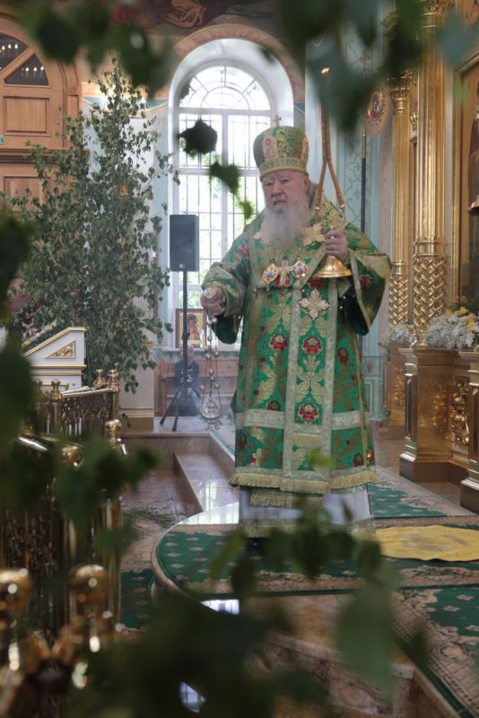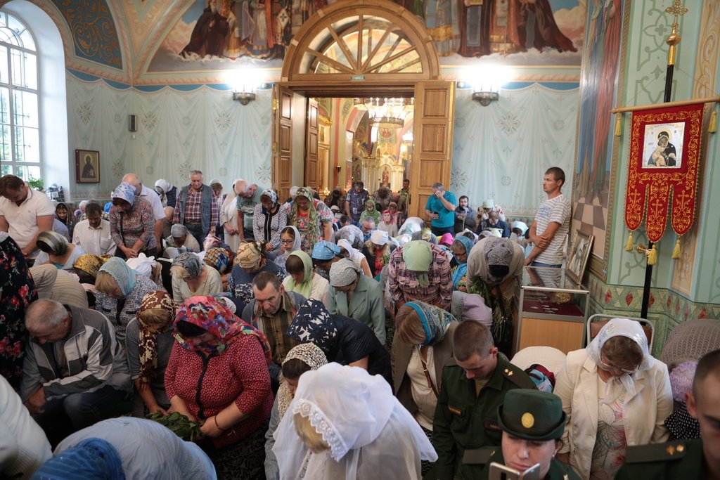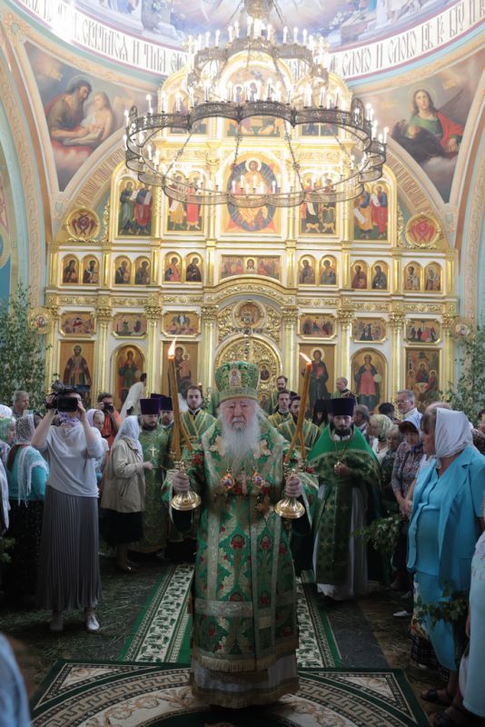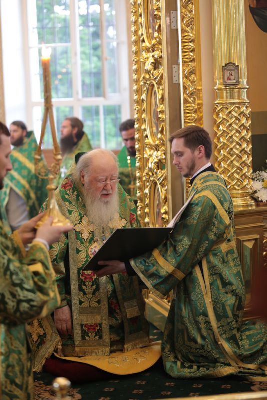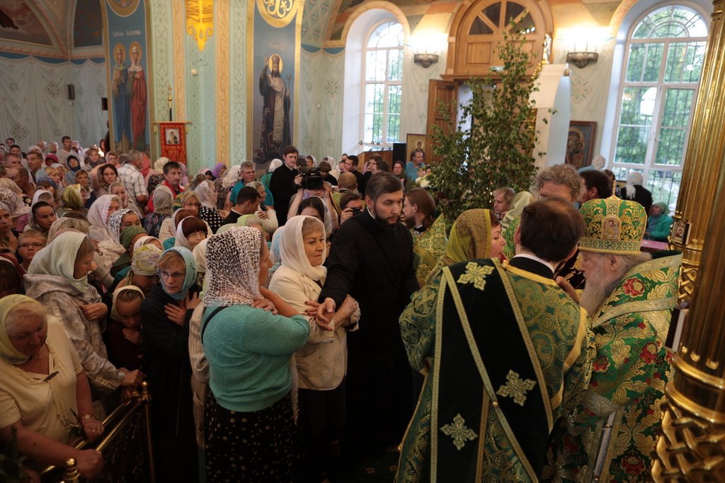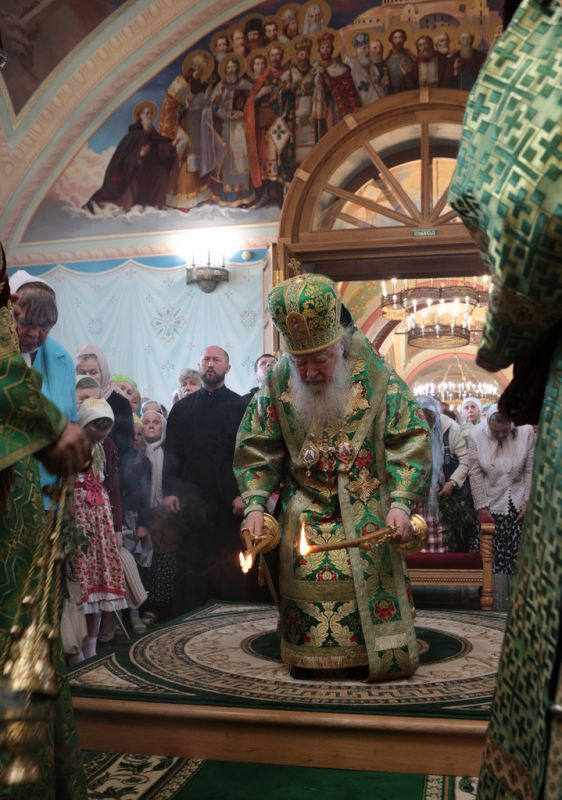По завершении Божественной литургии и крестного хода была совершена великая вечерня с чтением коленопреклонных молитв.