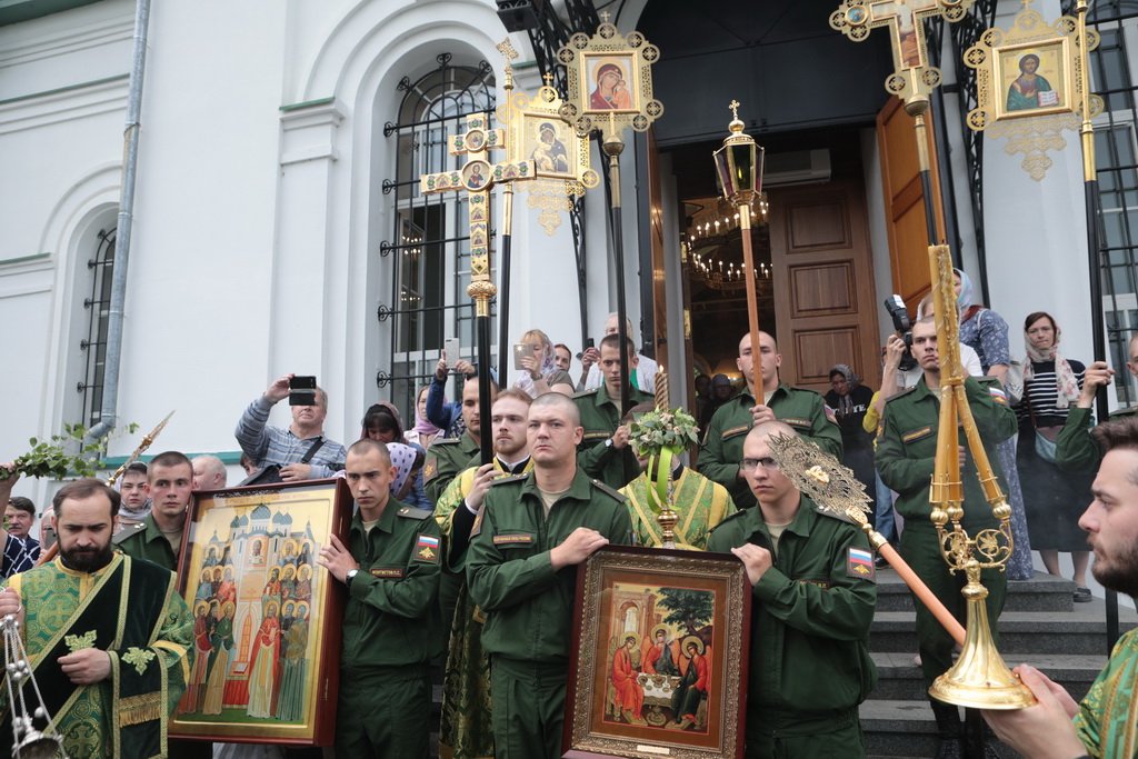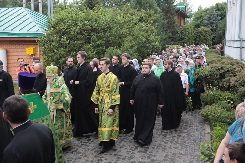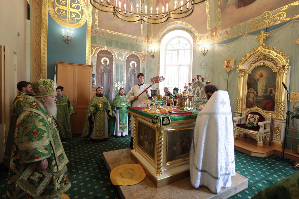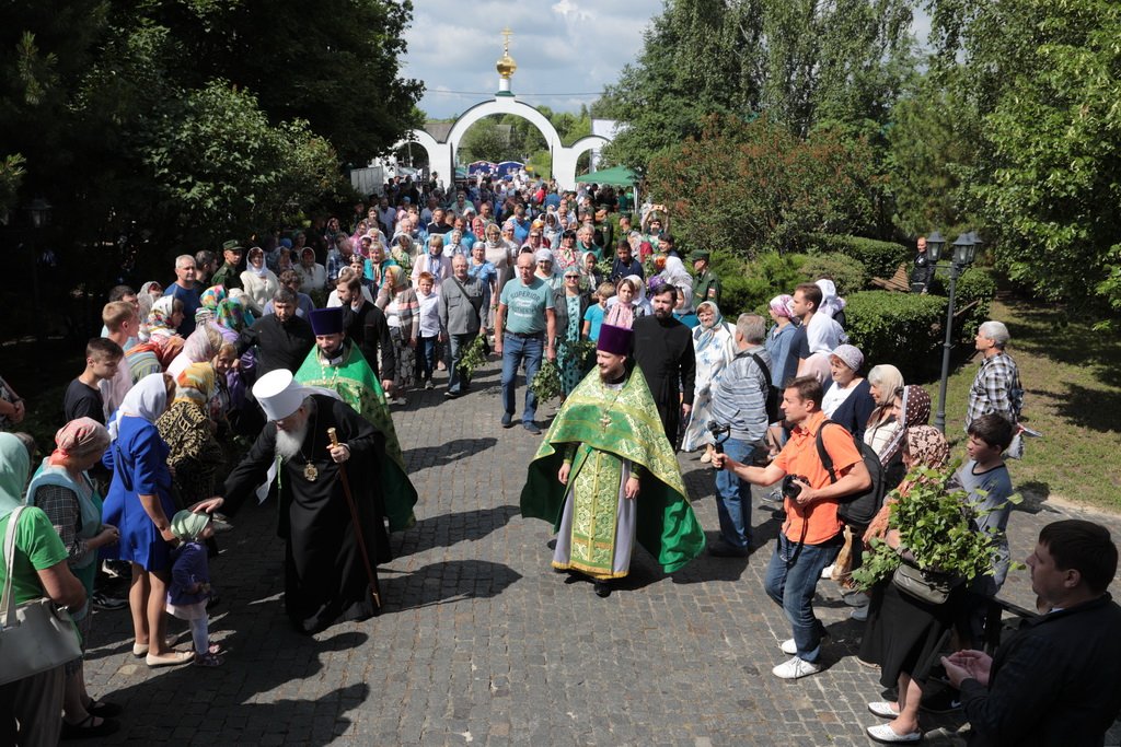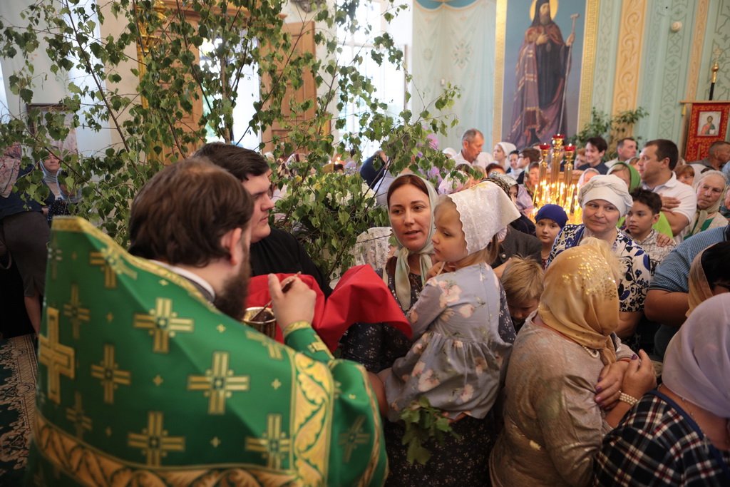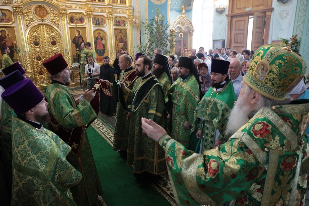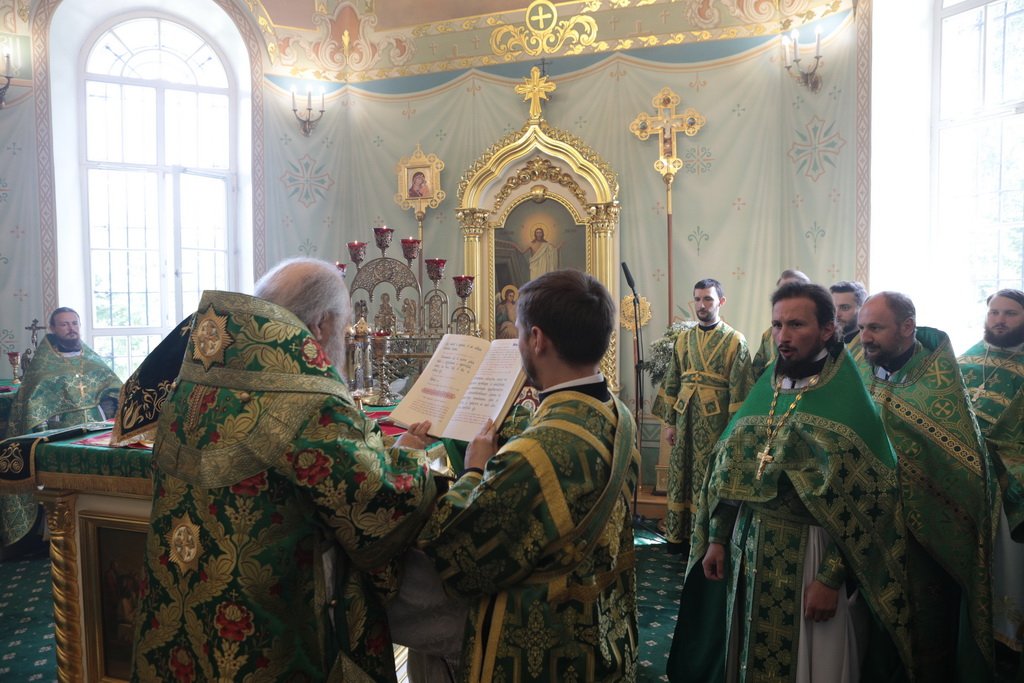 По завершении Божественной литургии и крестного хода была совершена великая вечерня с чтением коленопреклонных молитв.