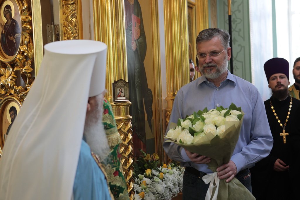 С поздравительным словом к митрополиту Ювеналию обратился глава попечительского совета храма Николай Цветков:
