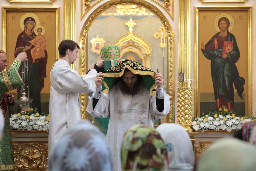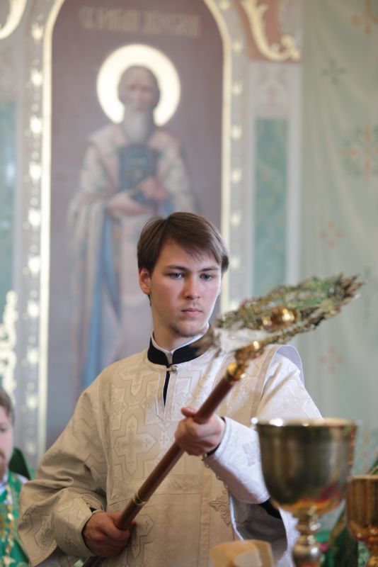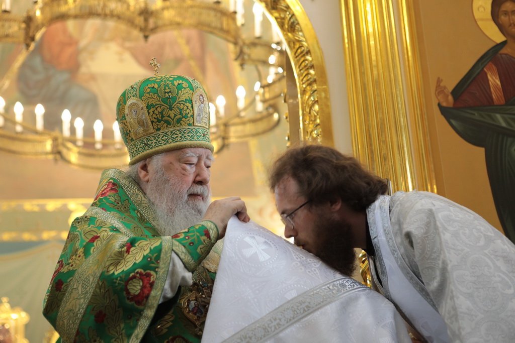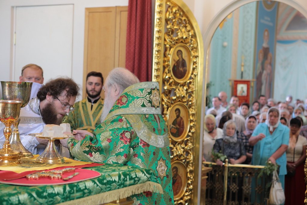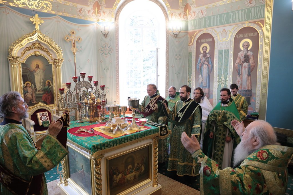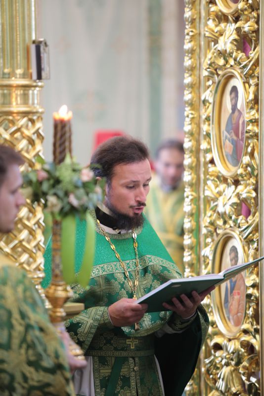 Ваше Высокопреосвященство! Разрешите в день Святой Троицы обратиться к Вам от имени духовенства и жителей нашего Шатурского края и поблагодарить за сегодняшнее торжество. Сегодня явлена полнота Церкви: Литургия, диаконская и священническая хиротонии, чин вечерни с коленопреклонными молитвами. Дорогой Владыка, позвольте в знак благодарности преподнести Вам этот евхаристический набор, который Вы по своему архиерейскому усмотрению передадите в храм, который, быть может, только открылся, или только начинает возрождаться. Многая вам лета, дорогой Владыка!