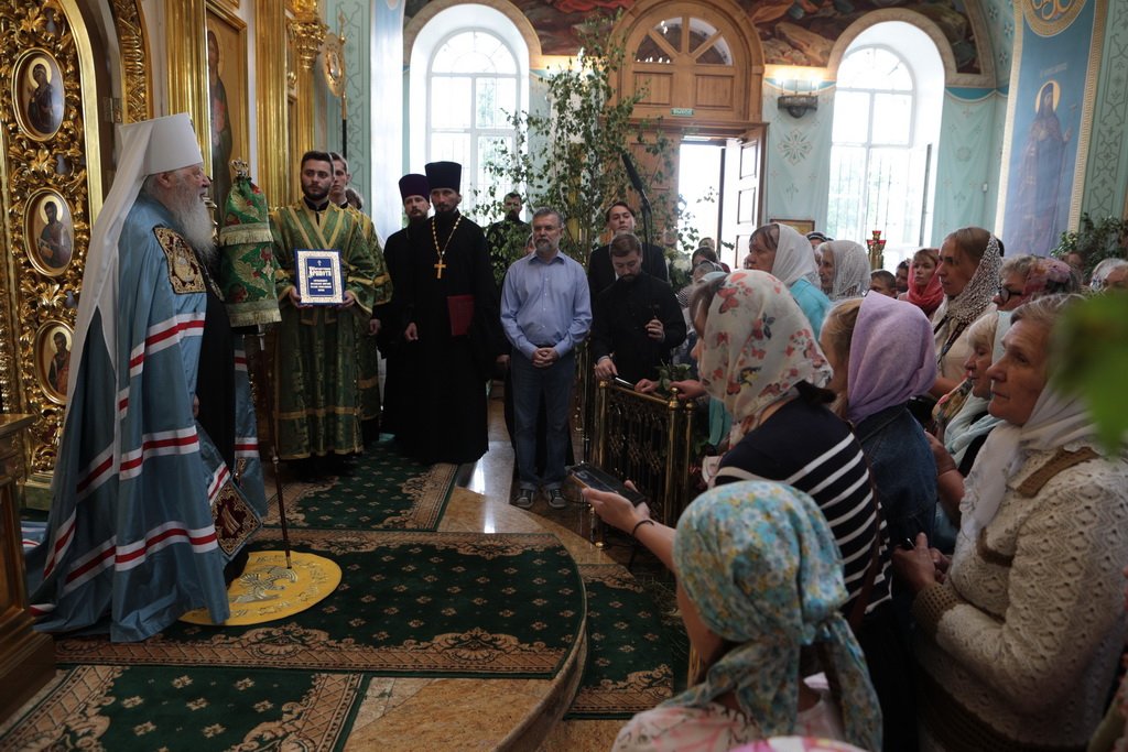 В связи со 150-летием храма и во внимание к усердным трудам митрополит Ювеналий удостоил настоятеля храма священника Евгения Шевыкина своей Благодарственной грамоты.