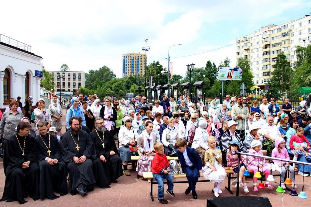 16 июня на территории Троицкого храма г. Реутова прихожане организовали праздничный концерт. Зрителей поздравил с праздником настоятель храма и благочинный Балашихинского церковного округа протоиерей Димитрий Мурзюков. Затем приходские коллективы исполнили патриотические и русские народные песни. Рядом проходили ярмарка и конкурсы, в которых приняли участие прихожане и гости храма.