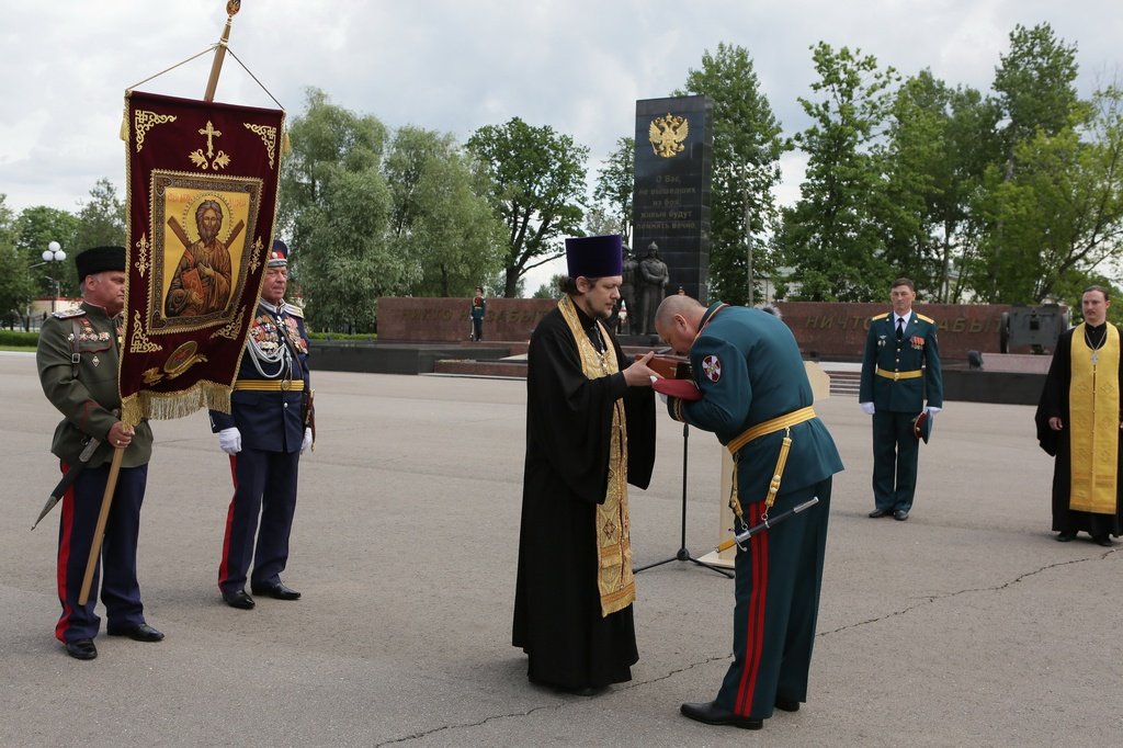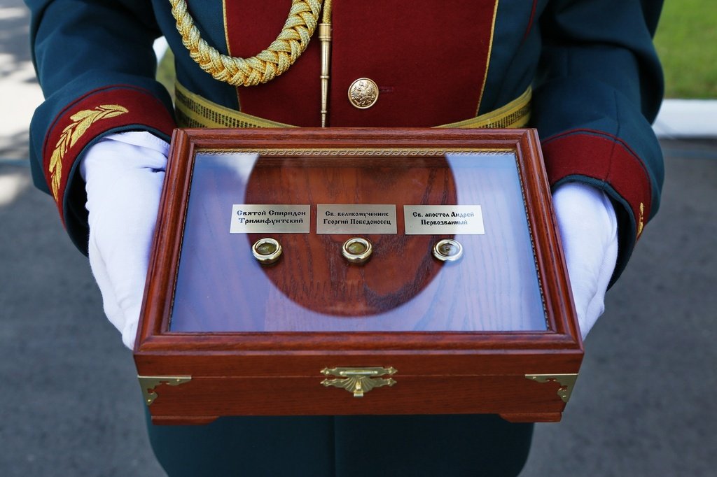 17 июня Отдельная дивизия оперативного назначения им. Ф.Э. Дзержинского отмечала свое 95-летие. Во время этого мероприятия состоялась передача ковчега с мощами апостола Андрея Первозванного, великомученика Георгия Победоносца и святителя Спиридона Тримифунтского и воинской хоругви с изображением апостола Андрея главному храму Росгвардии – Князь-Владимирскому храму г. Балашихи. Святыни настоятелю храма протоиерею Максиму Беленкову передала президент Благотворительного фонда им. мученика Вонифатия Наталья Мезенцева. После торжественной церемонии к мощам приложились более пятисот военнослужащих.