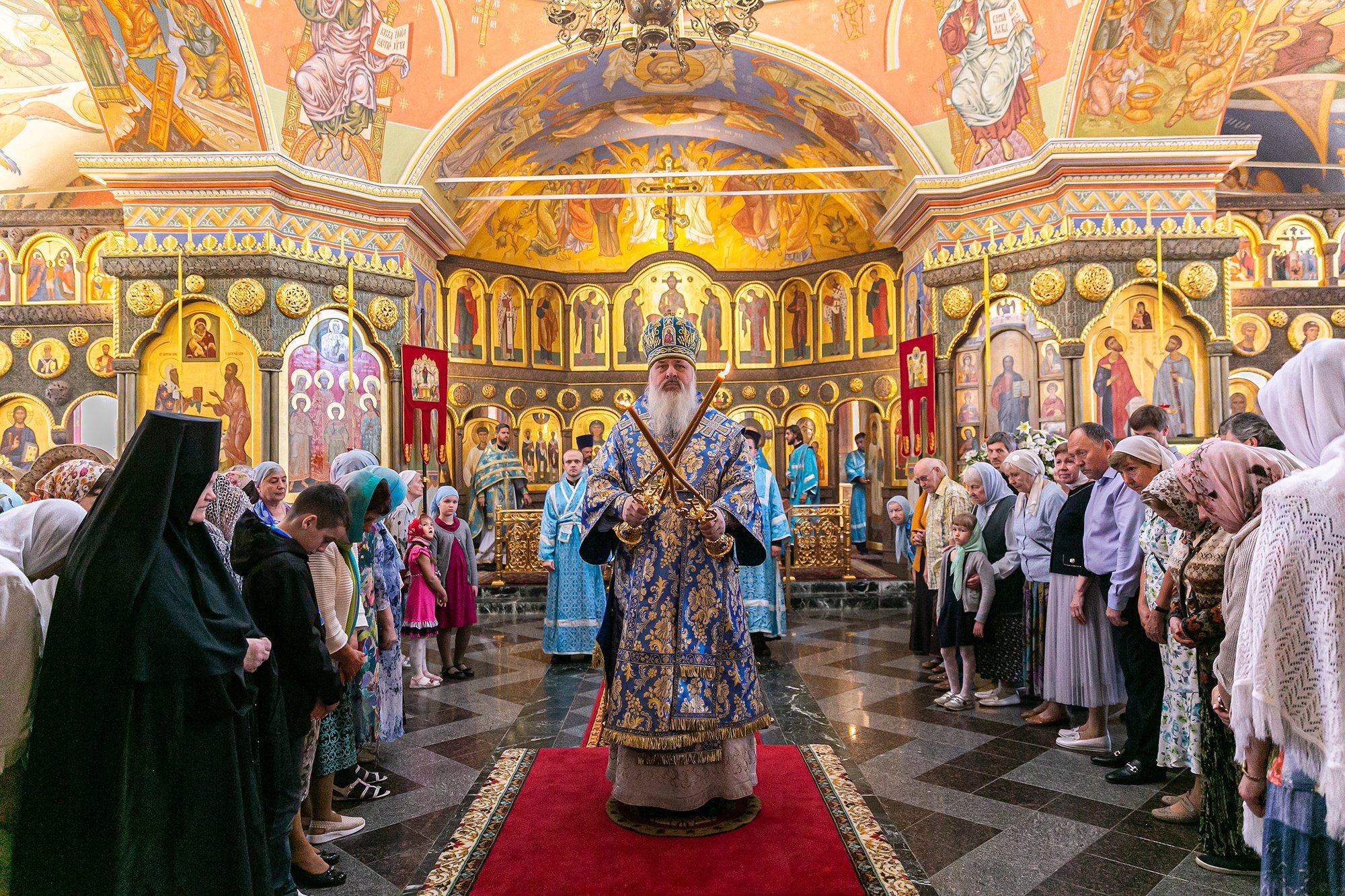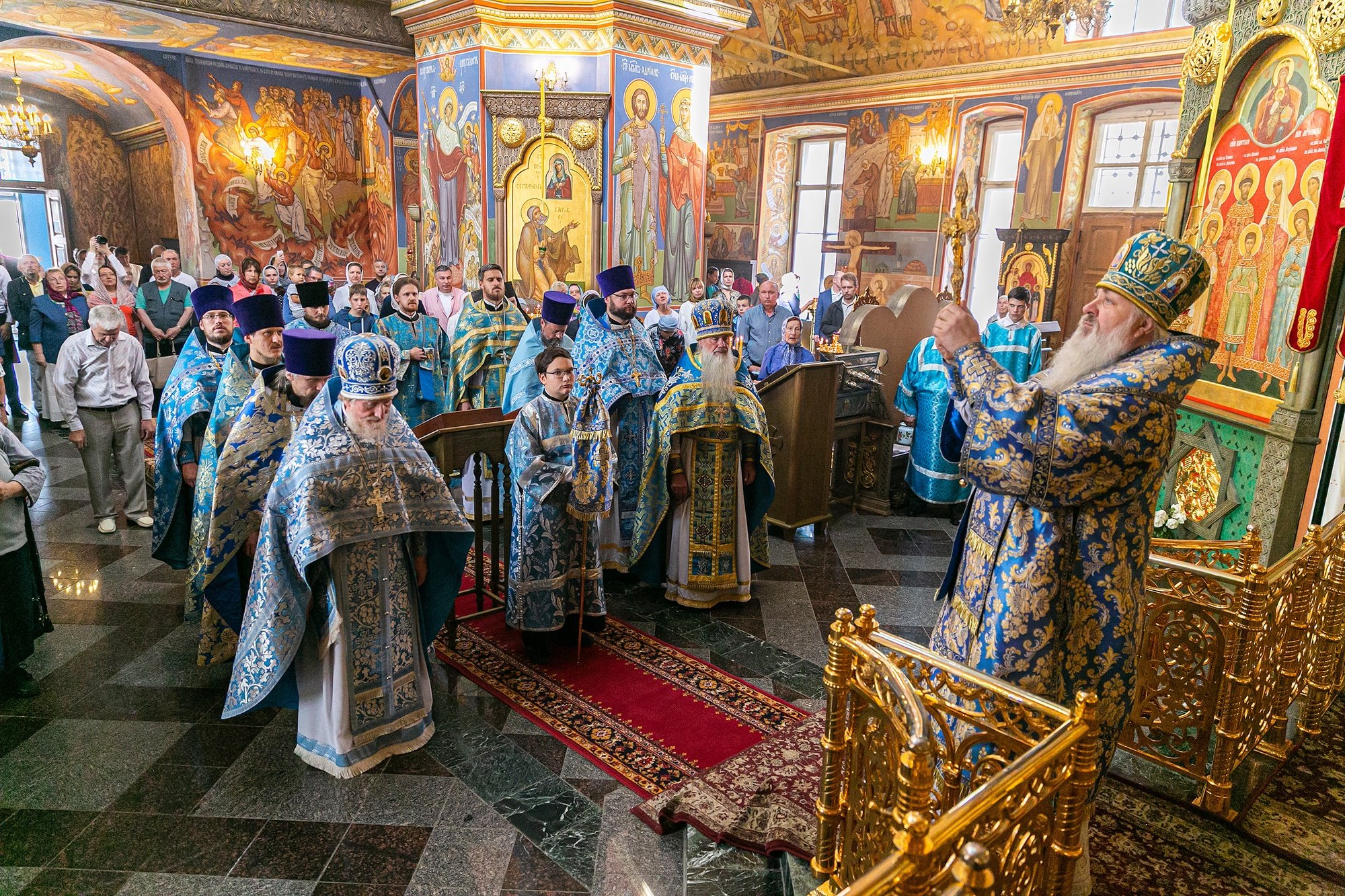 Божественную литургию совершил епископ Видновский Тихон. Его Преосвященству сослужили благочинный Щелковского церковного округа протоиерей Андрей Ковальчук, настоятель Сергиевского храма священник Илия Плешаков, настоятель Державного храма г. Фрязино священник Димитрий Третьяков, духовенство Щелковского и Лосино-Петровского благочиний. За богослужением молились начальник отдела по сохранению культурного наследия и туризма администрации городского округа Щелково Ирина Коврижных, руководитель Медвежье-Озерского территориального подразделения Татьяна Леньковская, директор Алмазовской коррекционной школы «Доверие» Светлана Кручинина и прихожане. По окончании Литургии был совершен молебен о сохранении творения Божия. Протоиерей Андрей Ковальчук поблагодарил епископа Тихона за совместную молитву. Его Преосвященство обратился к собравшимся с архипастырским словом и передал благословение митрополита Ювеналия. Затем состоялся концерт, в котором приняли участие приходские хоры, гости и прихожане храма.