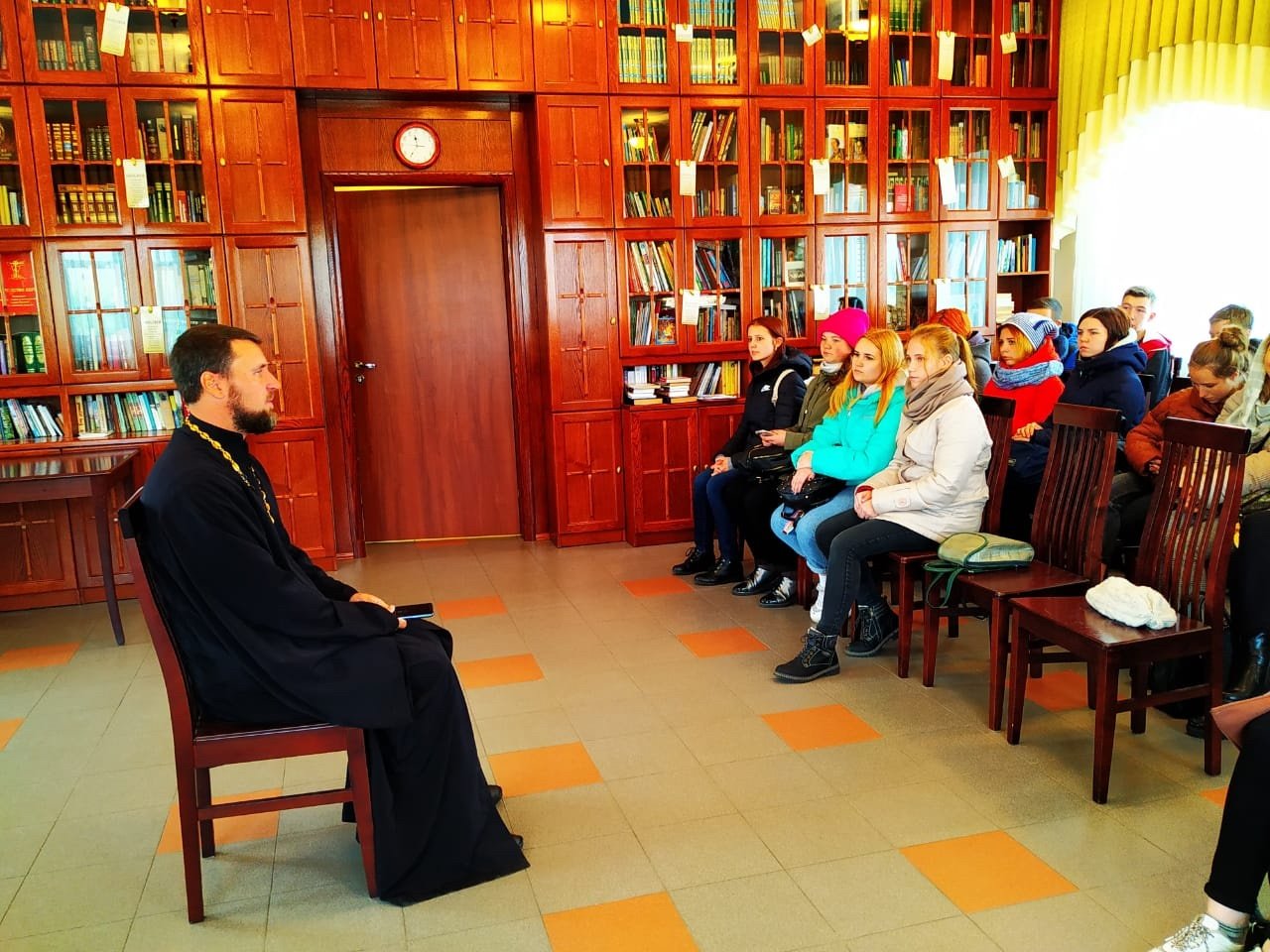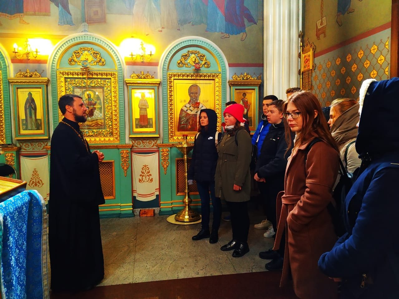24 сентября студенты Щелковского колледжа вместе с преподавателем Ю. С. Соларевой посетили храм иконы Божией Матери «Спорительница хлебов» г. Щелково. Настоятель храма священник Александр Мороков провел для гостей экскурсию по храму и беседу о различных зависимостях, сопровождавшуюся показом тематических видеоматериалов.