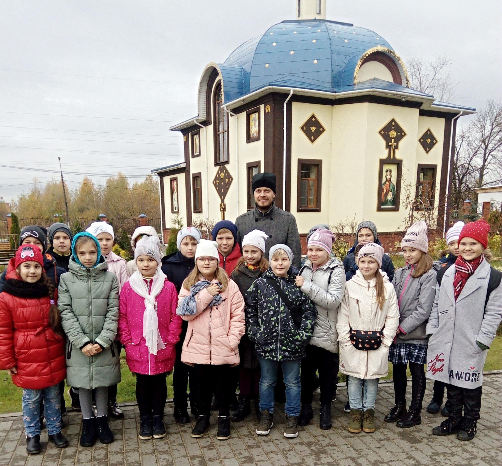 10 октября настоятель Георгиевского храма г. Орехово-Зуево священник Димитрий Филин провел экскурсию по храму и прилегающей территории для учеников четвертых классов орехово-зуевской школы № 17, их родителей и учителей.