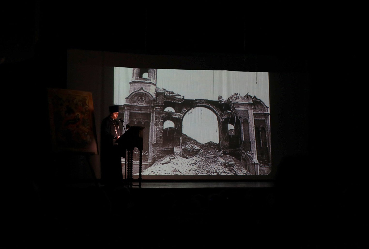 С докладом на тему «Церковь в годы Великой Отечественной войны» выступил клирик Вознесенского храма Электростали священник Илия Максимов. Торжественное мероприятие завершилось показом спектакля «Смутные времена: история одной жизни», который подготовила театральная студия «Горячие сердца», действующая при Вознесенском храме г. Павловский-Посад.