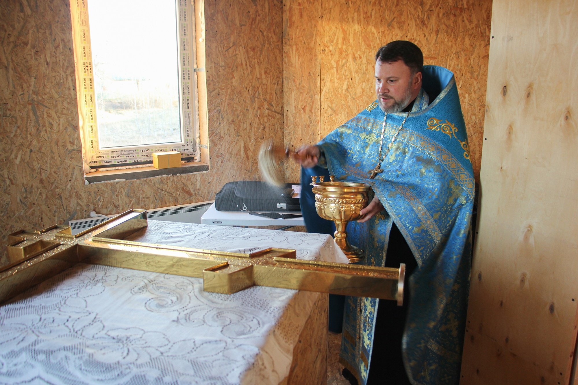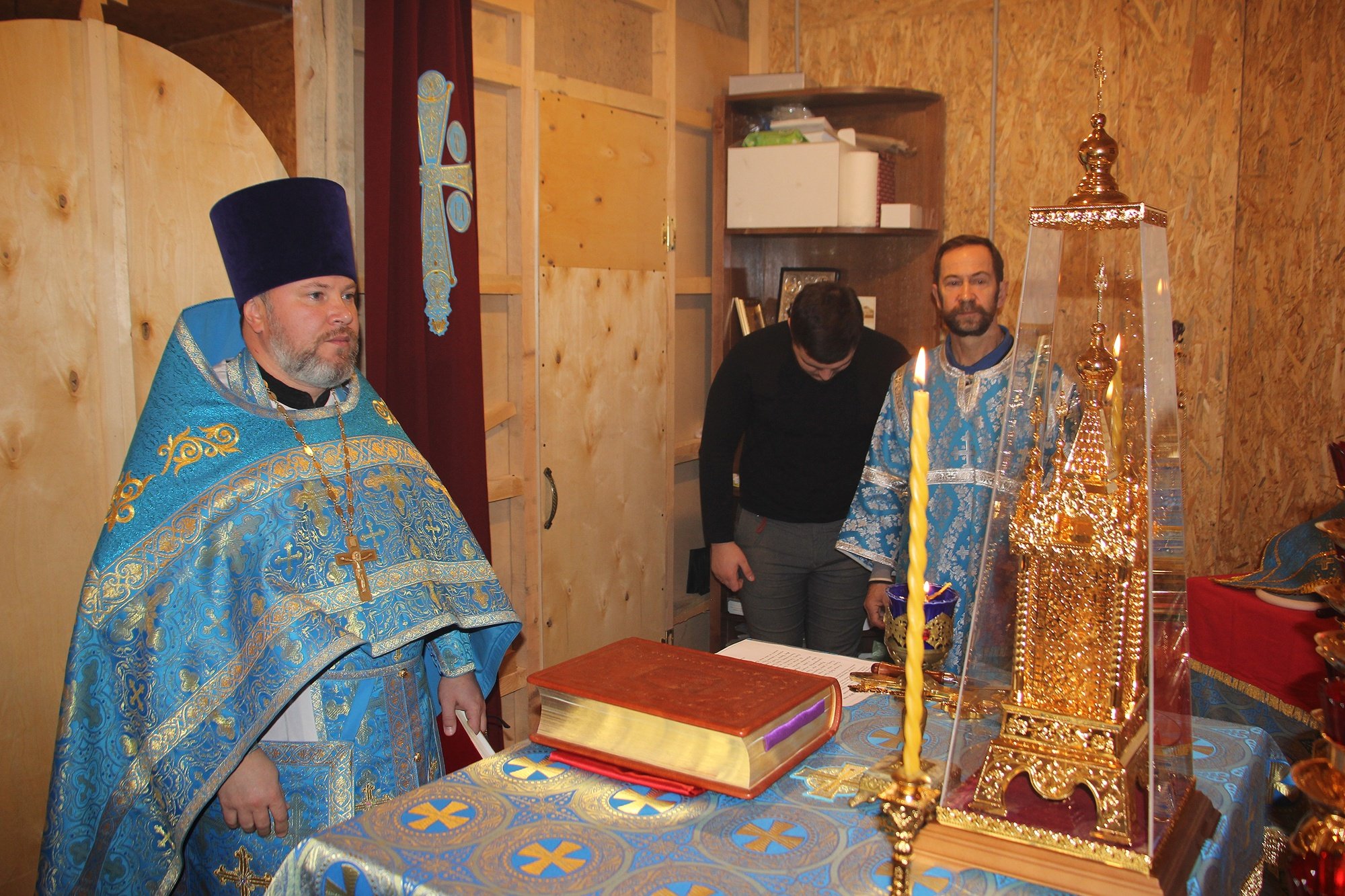 1 декабря настоятель Князь-Владимирского храма деревни Новофрязино священник Виктор Долгих совершил в деревне Мишнево чин освящения креста для храма иконы Божией Матери «Боголюбская», приписного к Князь-Владимирскому храму.