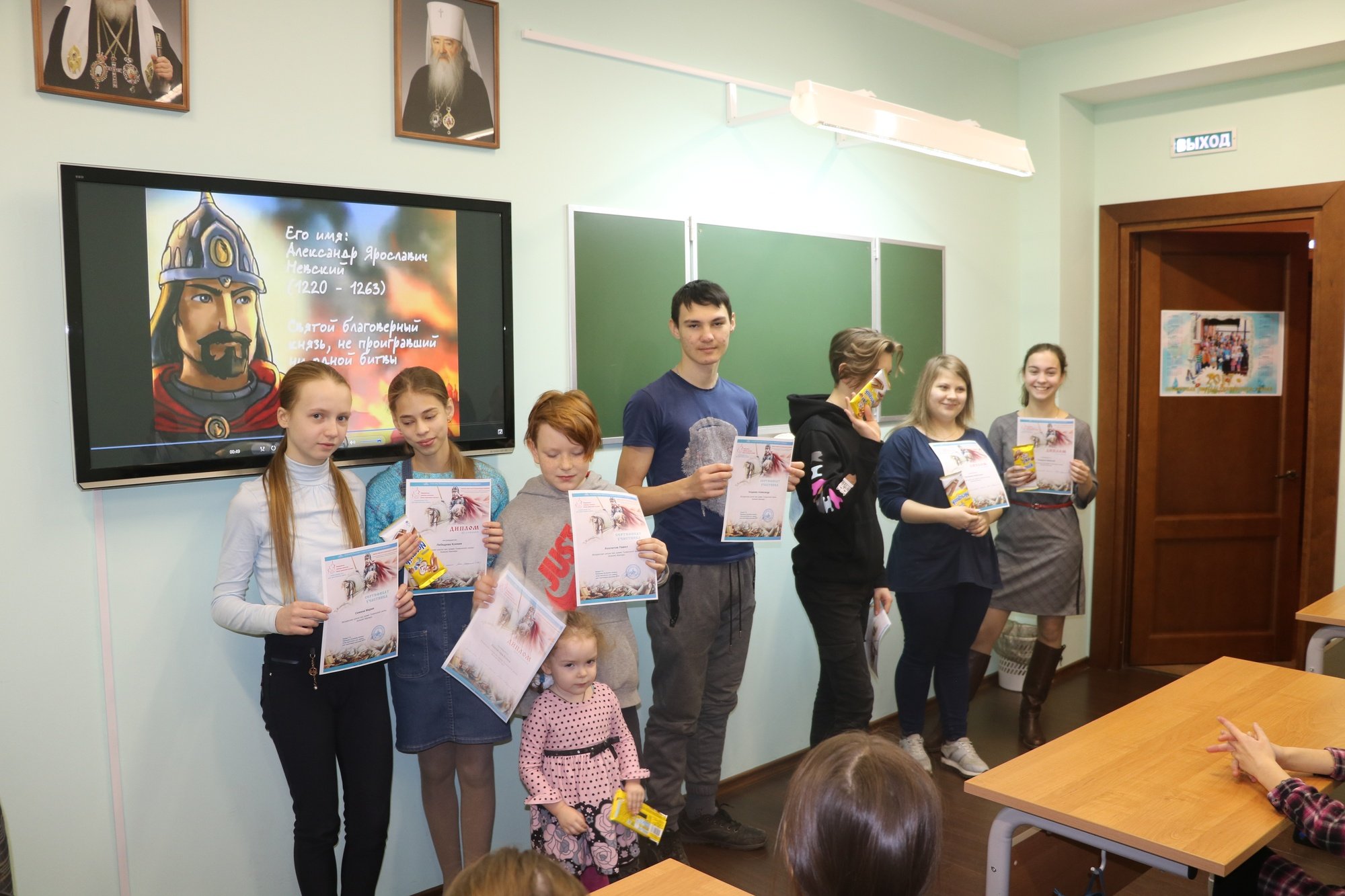 8 декабря в воскресной школе Тихвинского храма г. Ногинска состоялось мероприятие, приуроченное ко 800-летию со дня рождения благоверного князя Александра Невского и 78-летию битвы под Москвой. В начале мероприятия были подведены итоги приходского тура олимпиады по «Основам православной культуры», темами которой были «Великая Победа: наследие и наследники» и «Эпоха святого Александра Невского». Участники и победители получили дипломы и призы. После награждения для ребят и взрослых был организован видеолекторий «Александр Невский – русский святой князь».