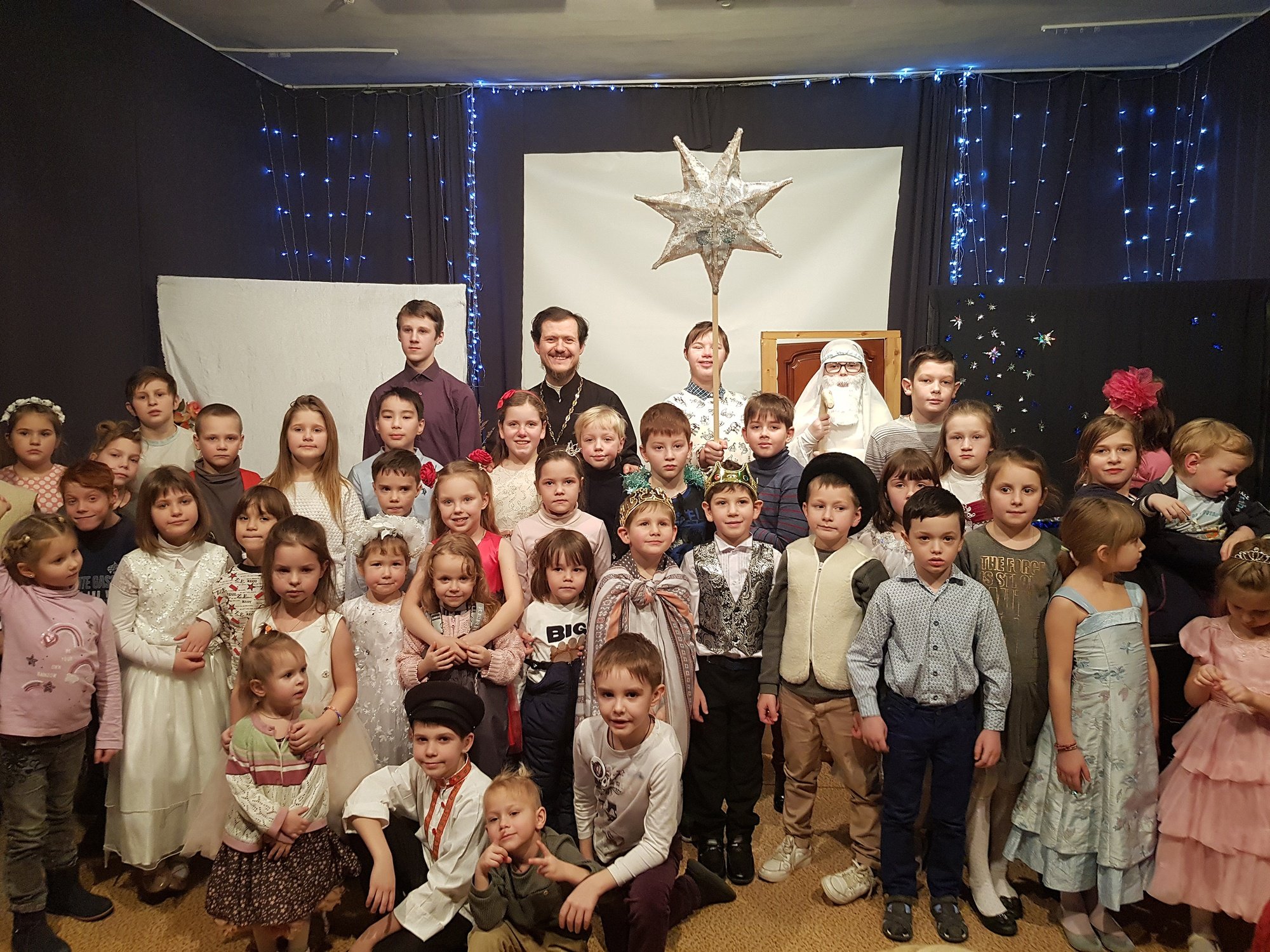 7 января в воскресной школе имени цесаревича Алексия Троицкого собора г. Щелкова прошел утренник, на котором учащиеся младшей группы показали сценку «Путеводная звезда», а старшие воспитанники – сценку «Добрые дела». По окончании представления к присутствующим обратился благочинный Щелковского церковного округа протоиерей Андрей Ковальчук.