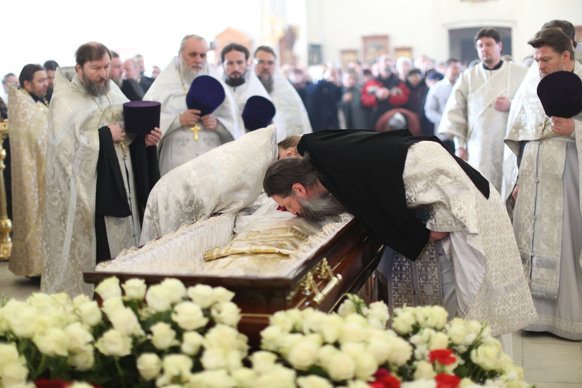 Ваше Высокопреосвященство, дорогой Владыка митрополит, Ваше Преосвященство, всечестные отцы, возлюбленные о Господе братья и сестры! Сегодня под сводами этого храма нас собрало скорбное событие: мы провожаем в путь всея земли настоятеля этого храма, нашего близкого друга и брата, пастыря, который два десятилетия неленостно совершал здесь свое служение.