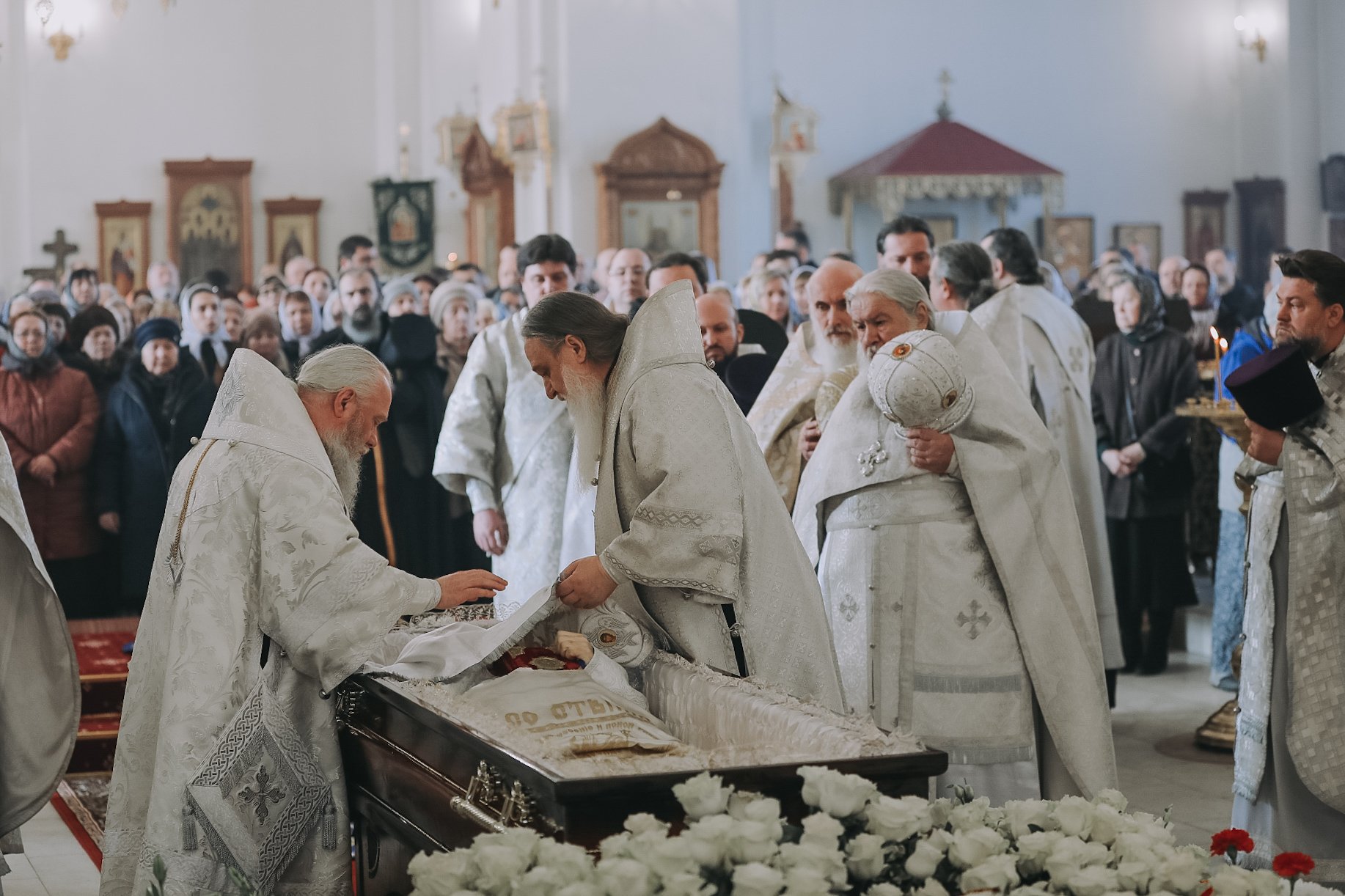 По окончании отпевания митрополит Ювеналий и сослужащее духовенство совершили погребение архимандрита Сергия (Шагаева) за алтарем Тихвинского храма.