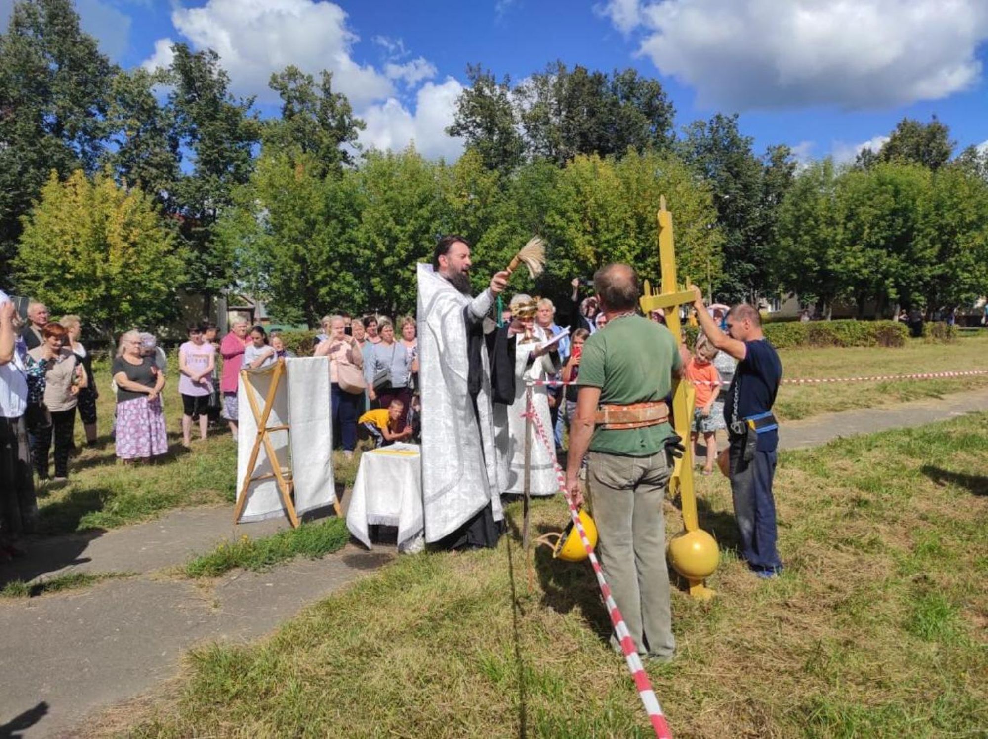 22 августа состоялось освящение и поднятие креста на шатер колокольни строящегося Богоявленского храма поселка Большие Дворы городского округа Павловский Посад. Чин освящения новосооруженного креста совершил благочинный церквей Павлово-Посадского округа, настоятель Богоявленского храма посёлка Большие Дворы протоиерей Александр Хомяк. На богослужении присутствовал генеральный директор ЗАО «Производственное объединение «Берег» В.В. Ковшутин.