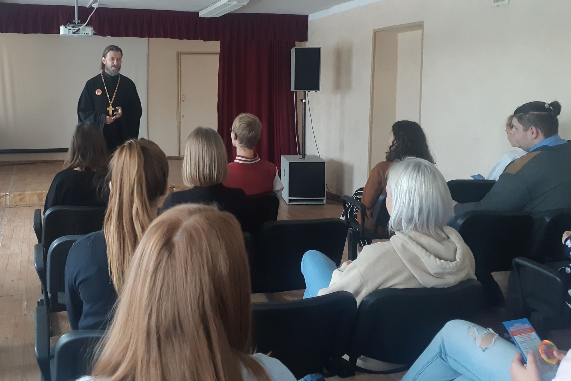 11 сентября в актовом зале Щелковского колледжа состоялась встреча учащихся специальности «Земельно-имущественные отношения» с настоятелем Сергиевского храма села Трубино священником Антонием Сенько. Он рассказал об алкогольной зависимости и здоровом образе жизни. На мероприятии присутствовали заместитель главы администрации г.о. Щелково Виктор Семин и начальник отдела территориальной безопасности администрации г.о. Щелково Елена Филатова. Всем студентам были вручены памятные сувениры.