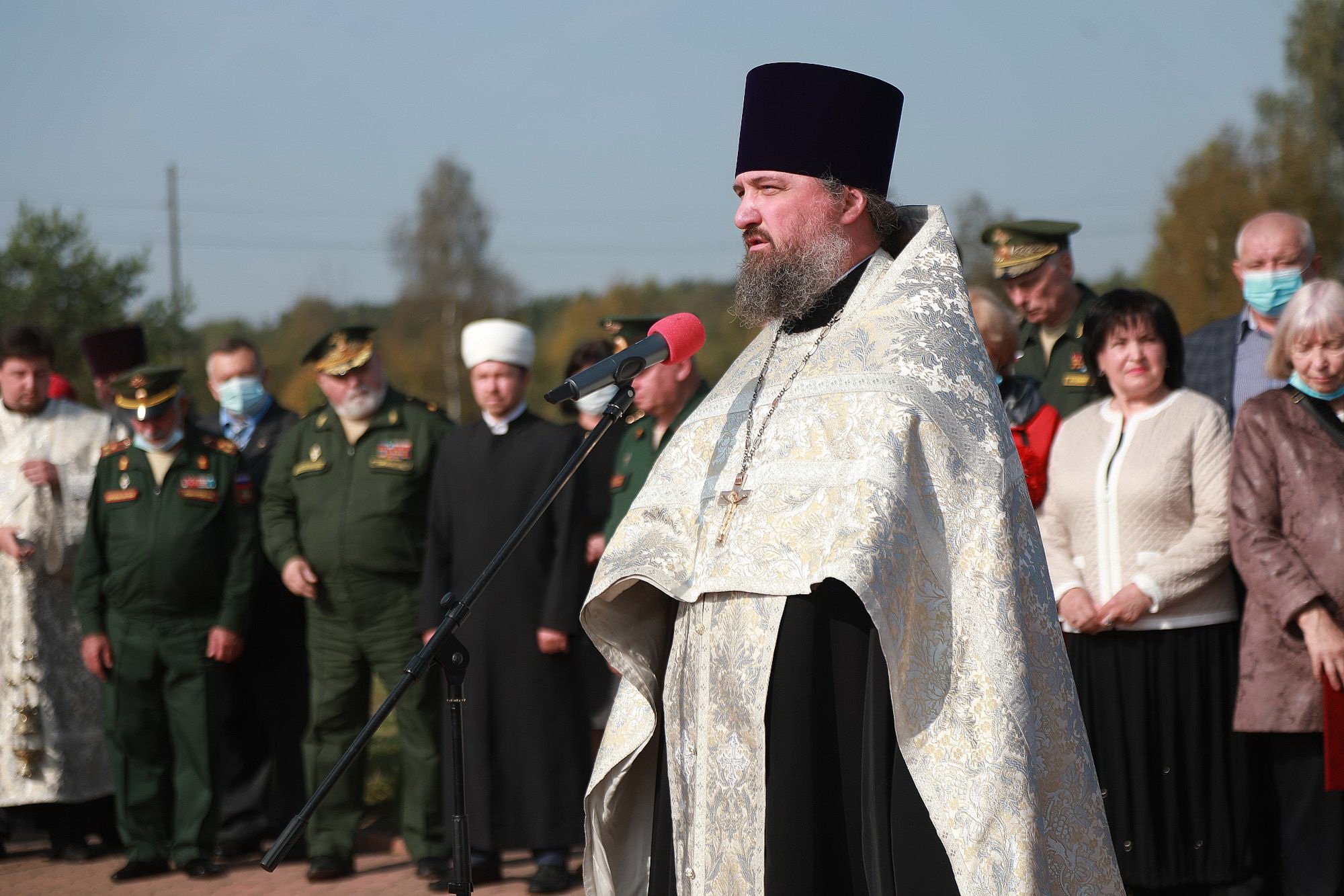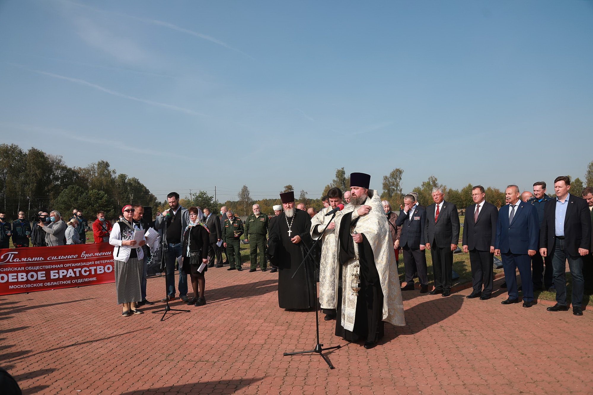 На митинге присутствовали глава Богородского городского округа Игорь Сухин, председатель совета московского областного отделения всероссийской общественной организации ветеранов «Боевое братство» Сергей Князев, ветеран Великой Отечественной войны П. П. Саган, председатель Епархиального отдела по взаимодействию с Вооруженными силами и правоохранительными органами протоиерей Марк Ермолаев. Отец Марк выразил соболезнования родственникам погибших и обратился к ним с пастырским словом, а затем совершил литию об упокоении павших воинов.