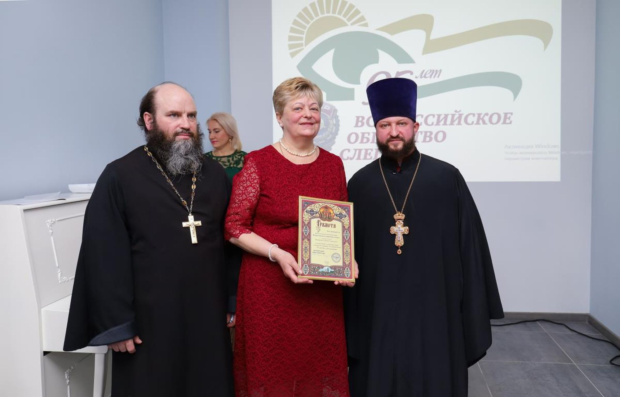12 марта в центральной библиотеке города Орехово-Зуево состоялось торжественное мероприятие, посвященное 95-летию со дня образования Всероссийского общества слепых. Собравшихся поздравили благочинный церквей Орехово-Зуевского округа протоиерей Андрей Коробков, ответственный за социальное служение и благотворительность в Орехово-Зуевском благочинии, настоятель Покровского храма села Старый Покров протоиерей Андрей Зозуля, другие почетные гости.
