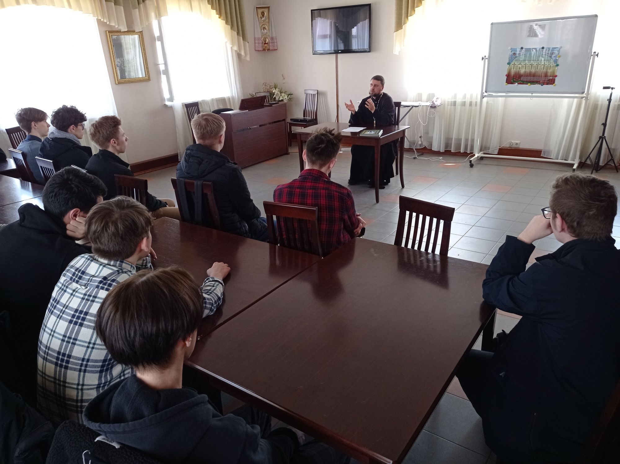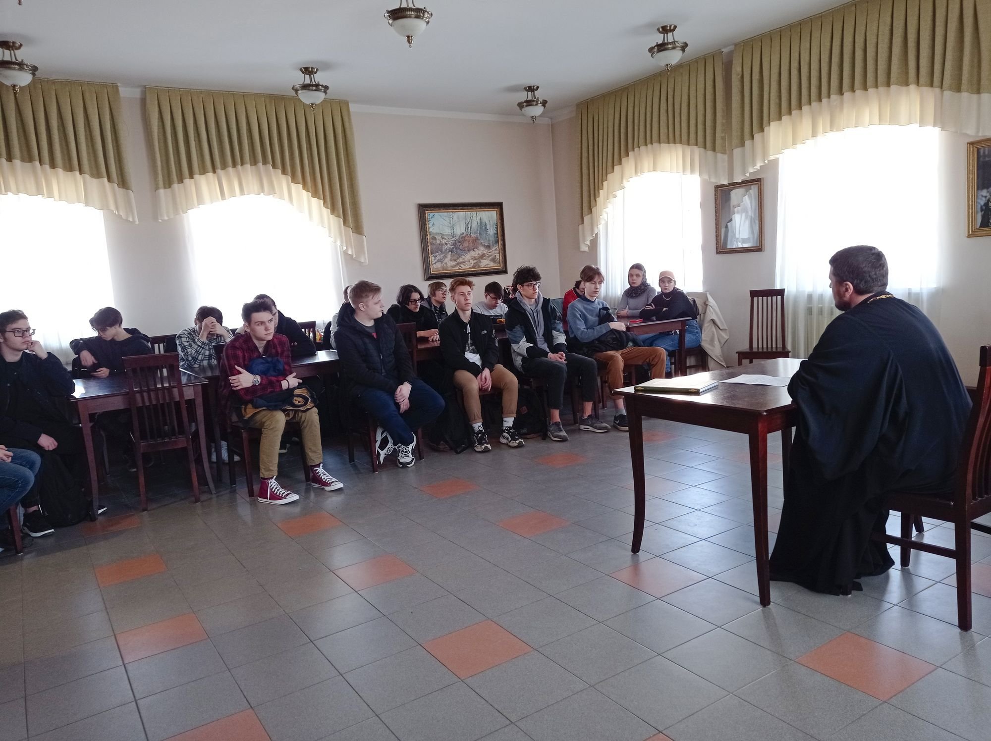 6 апреля учащиеся Щелковского колледжа посетили храм иконы Божией Матери «Спорительница хлебов» г. Щелково и встретились с его настоятелем священником Александром Мороковым. Он рассказал ребятам об истории возникновения храма и просфорного цеха на территории ЗАО «Щелковохлеб», поговорил с ребятами о духовных ценностях.