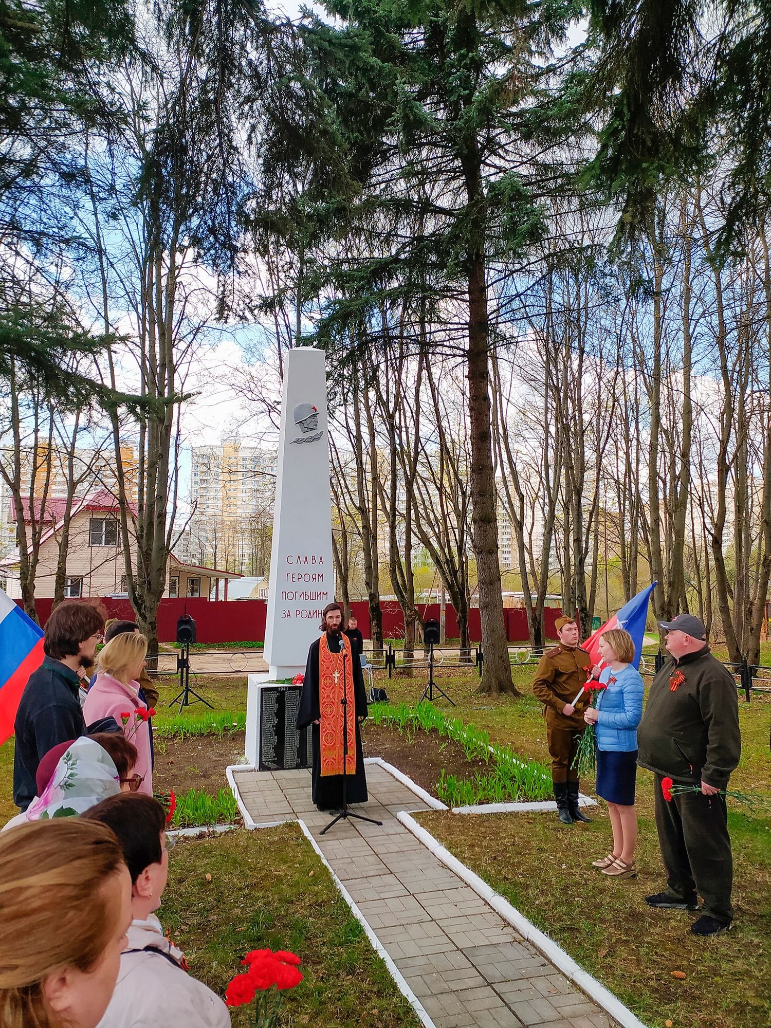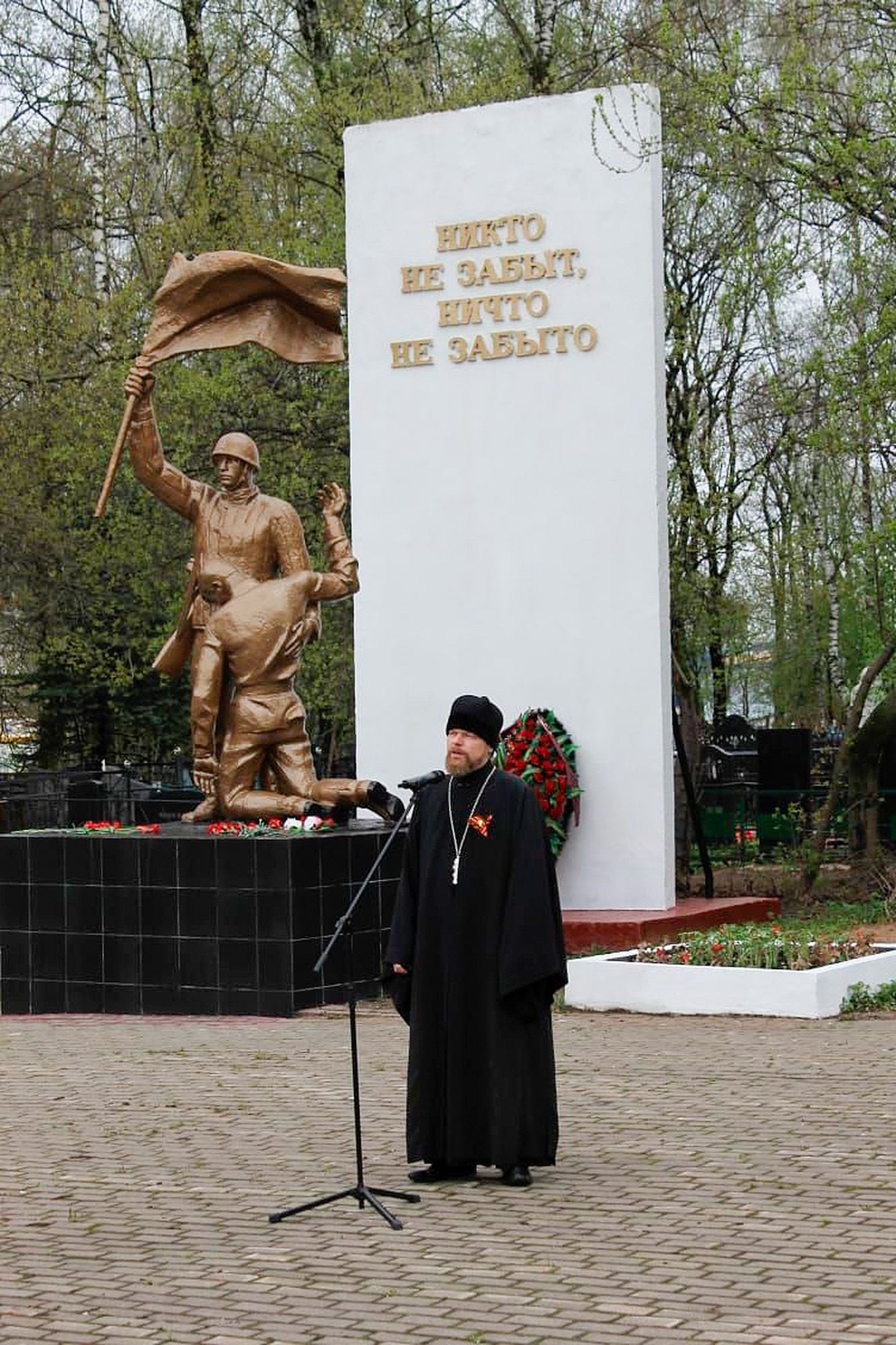 7 мая у Гребневского обелиска Победы прошел торжественный митинг. В нем принял участие клирик Гребневского храма деревни Гребнево священник Иоанн Коваленко, который отслужил заупокойную литию.
