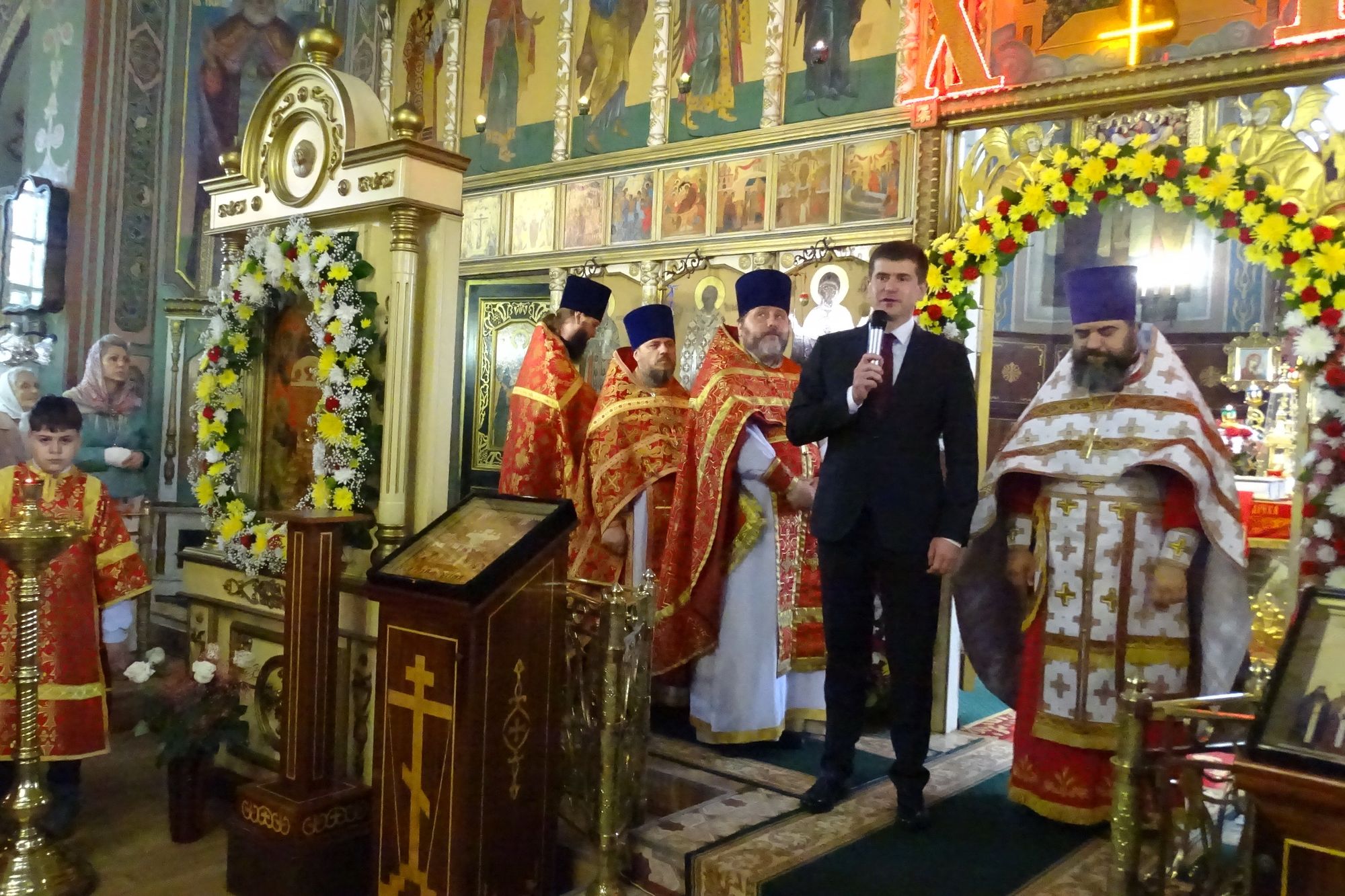 С приветственным словом к прихожанам обратился глава Орехово-Зуевского городского округа Г. О. Панин. За Литургией молились заместитель председателя совета депутатов Орехово-Зуевского городского округа М. А. Коркин, депутаты Е. В. Смолин и А. Е. Потапов, директор городской спортивной школы «Феникс» Н. С. Скворцов, представители общественных организаций.