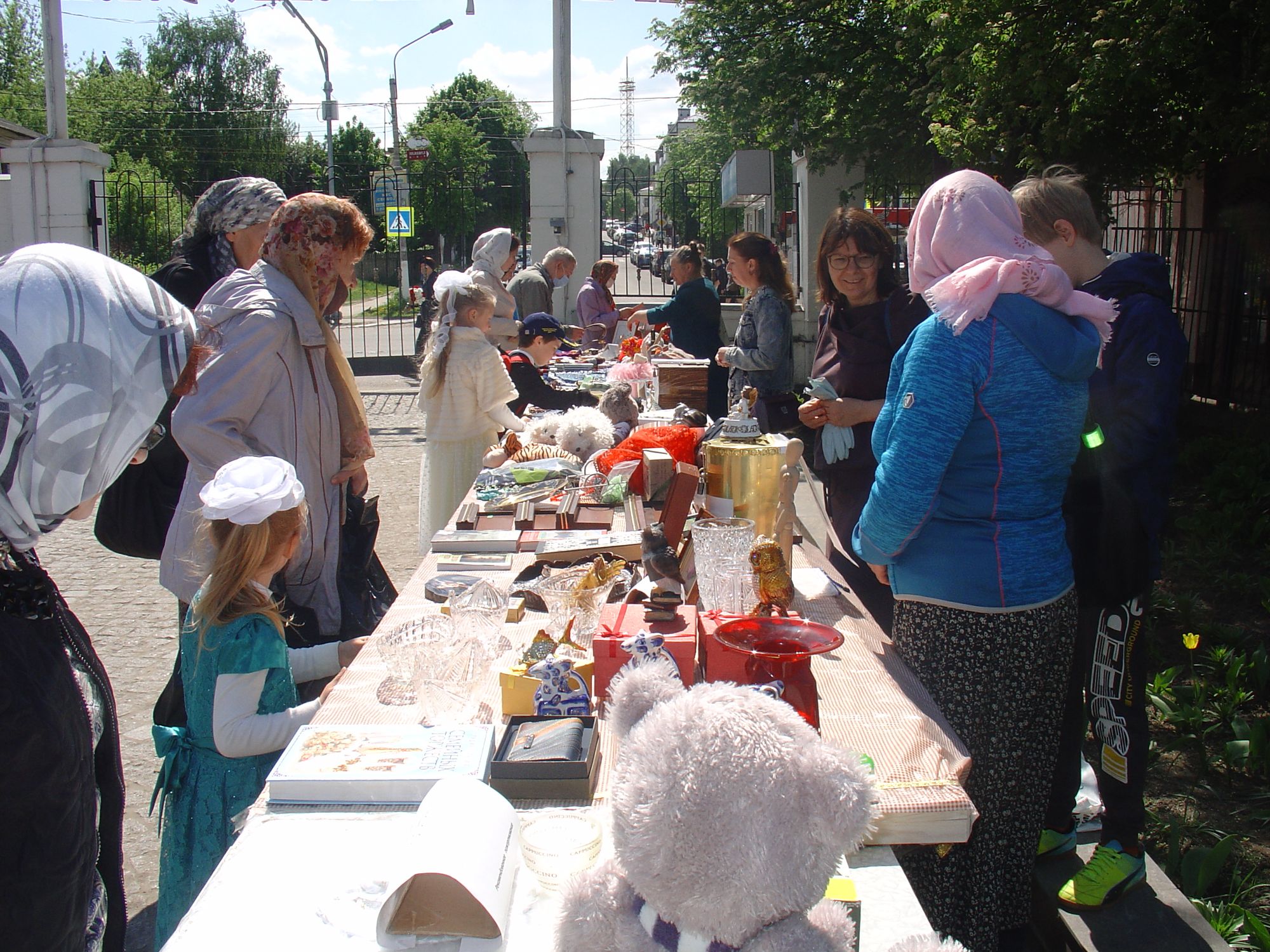 22 мая на территории Богоявленского собора г. Ногинска прошла благотворительная ярмарка, организованная действующей на приходе группой «Милосердие». Прихожанам были предложены изделия ручной работы, сувениры, украшения, игрушки, посуда, картины, книги и многое другое. Ярмарка продолжалась с 8 до 17 часов, в ее работе приняли участие 15 волонтеров.