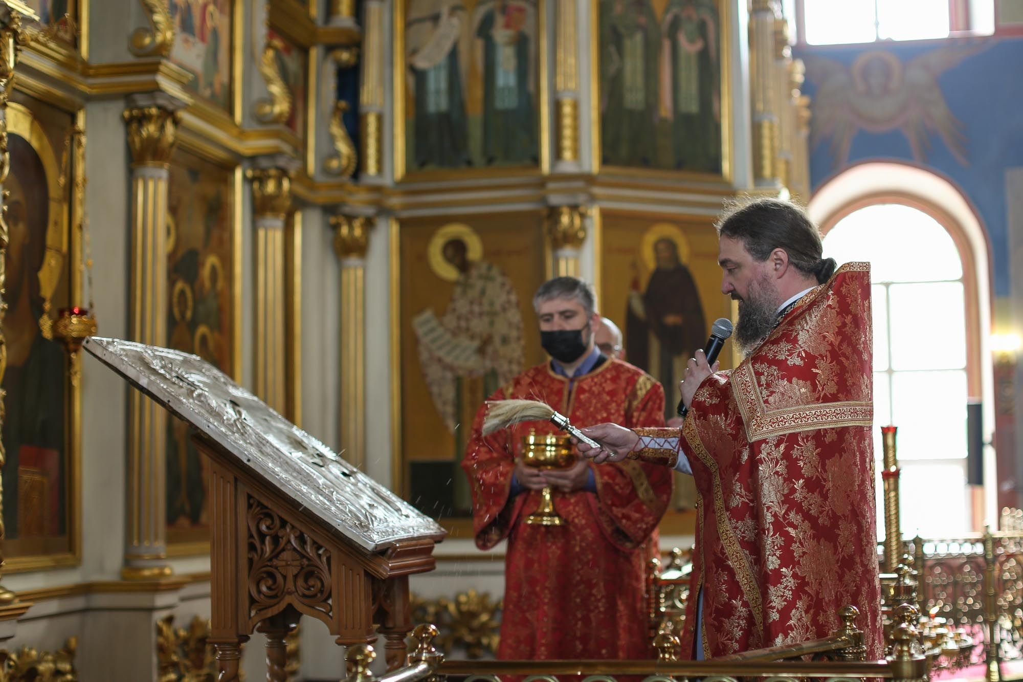 30 мая в Богоявленском соборе г. Ногинска после Божественной литургии благочинный Богородского церковного округа протоиерей Марк Ермолаев с духовенством совершил освящение почитаемой прихожанами собора иконы Божией Матери «Боголюбская», которая в течение продолжительного времени находилась на реставрации и теперь будет вновь помещена на свое обычное место. Отец Марк обратился к прихожанам с пастырским словом и рассказал о реставрации образа.