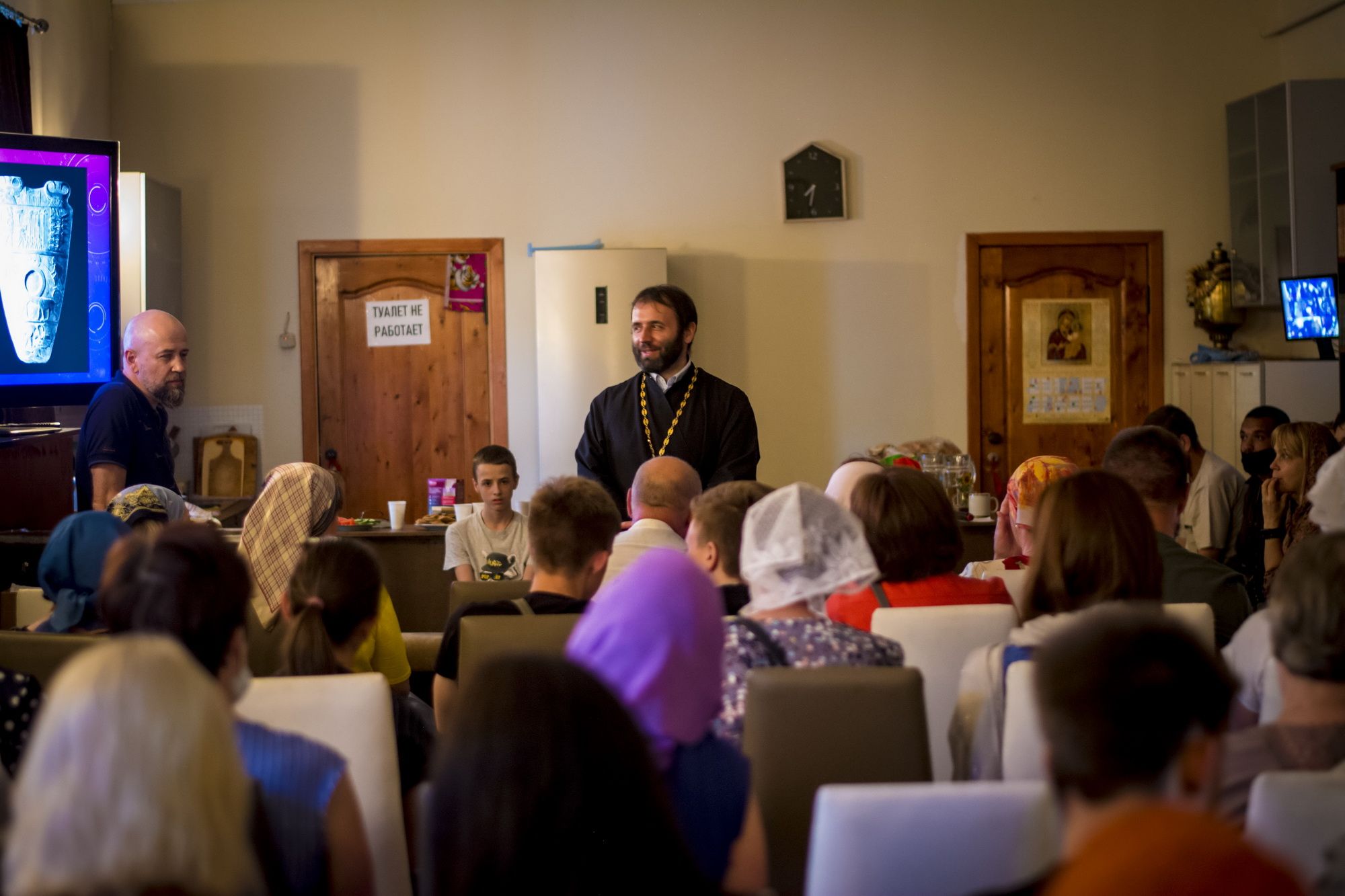 16 июня в храме иконы Божией Матери «Всех скорбящих Радость» г. Рошаля состоялось собрание молодежного благотворительного объединения «Николаевцы». Режиссёр Николай Сутормин выступил с лекцией на тему «Сотворение мира: светский и духовный подходы». Затем благочинный Шатурского церковного округа священник Иоанн Депутатов рассказал собравшимся о деятельности молодежной организации и о планах на будущее.