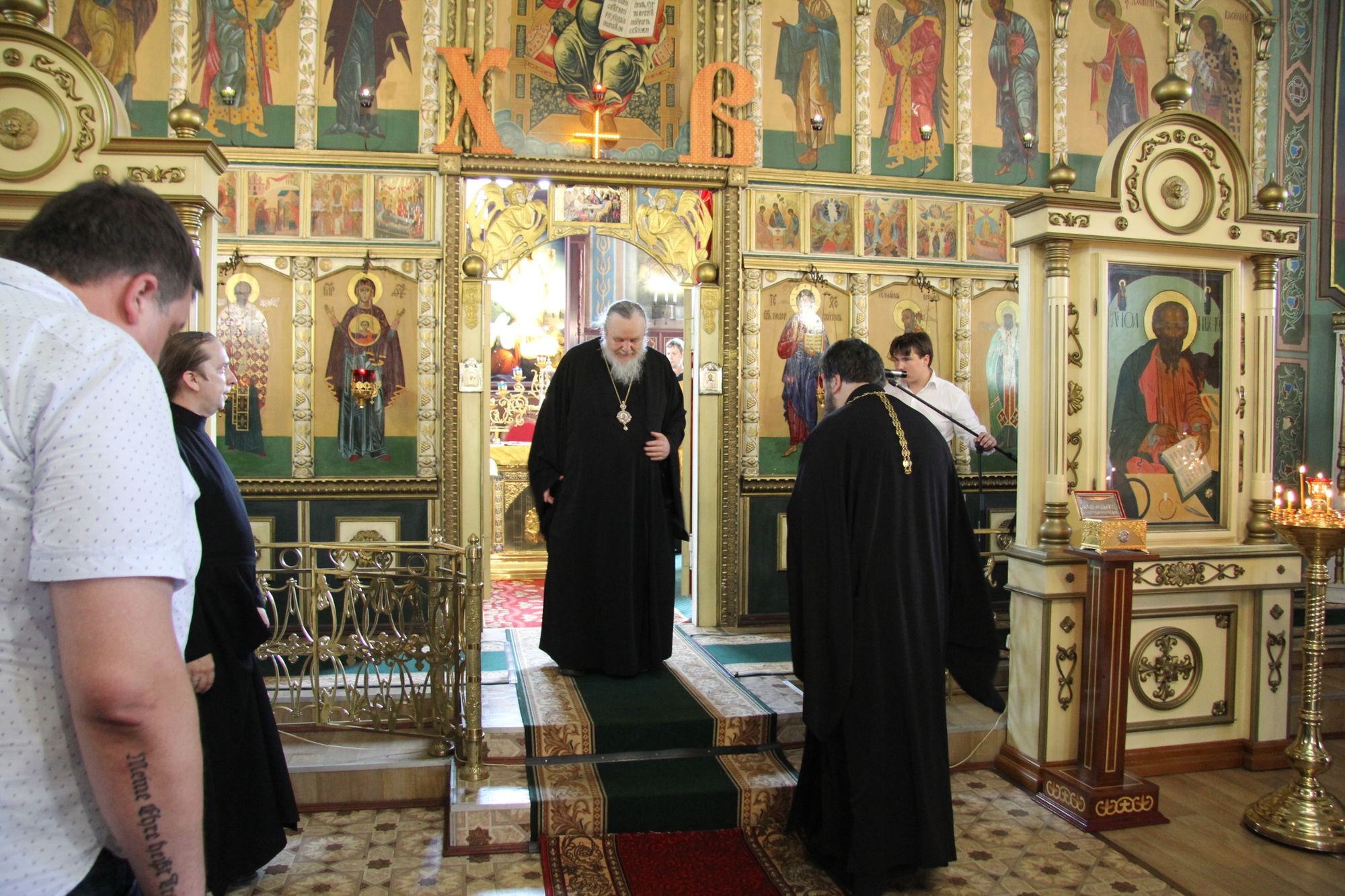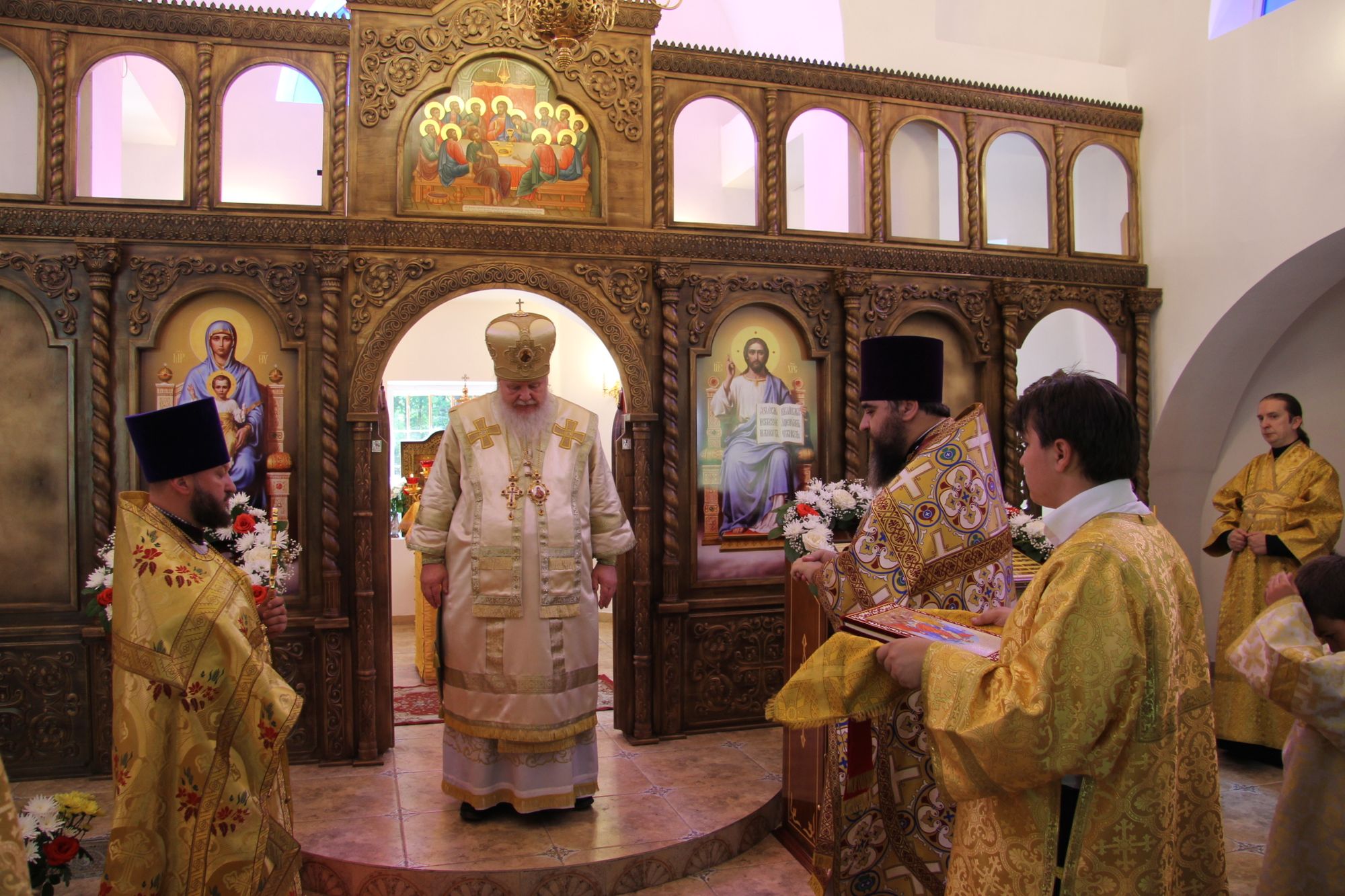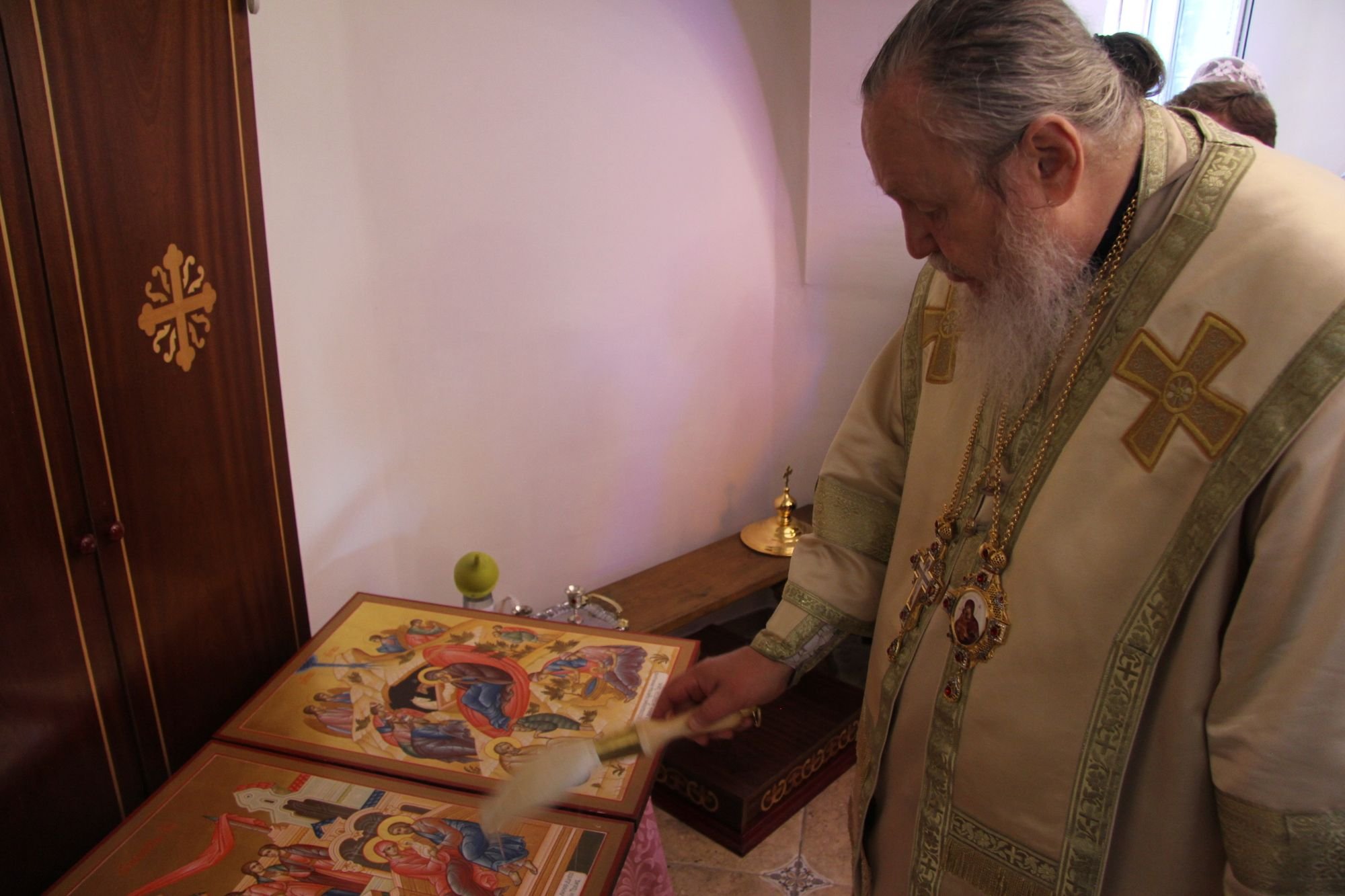 После богослужения Владыка освятил подаренные благотворителями иконы для иконостаса храма.