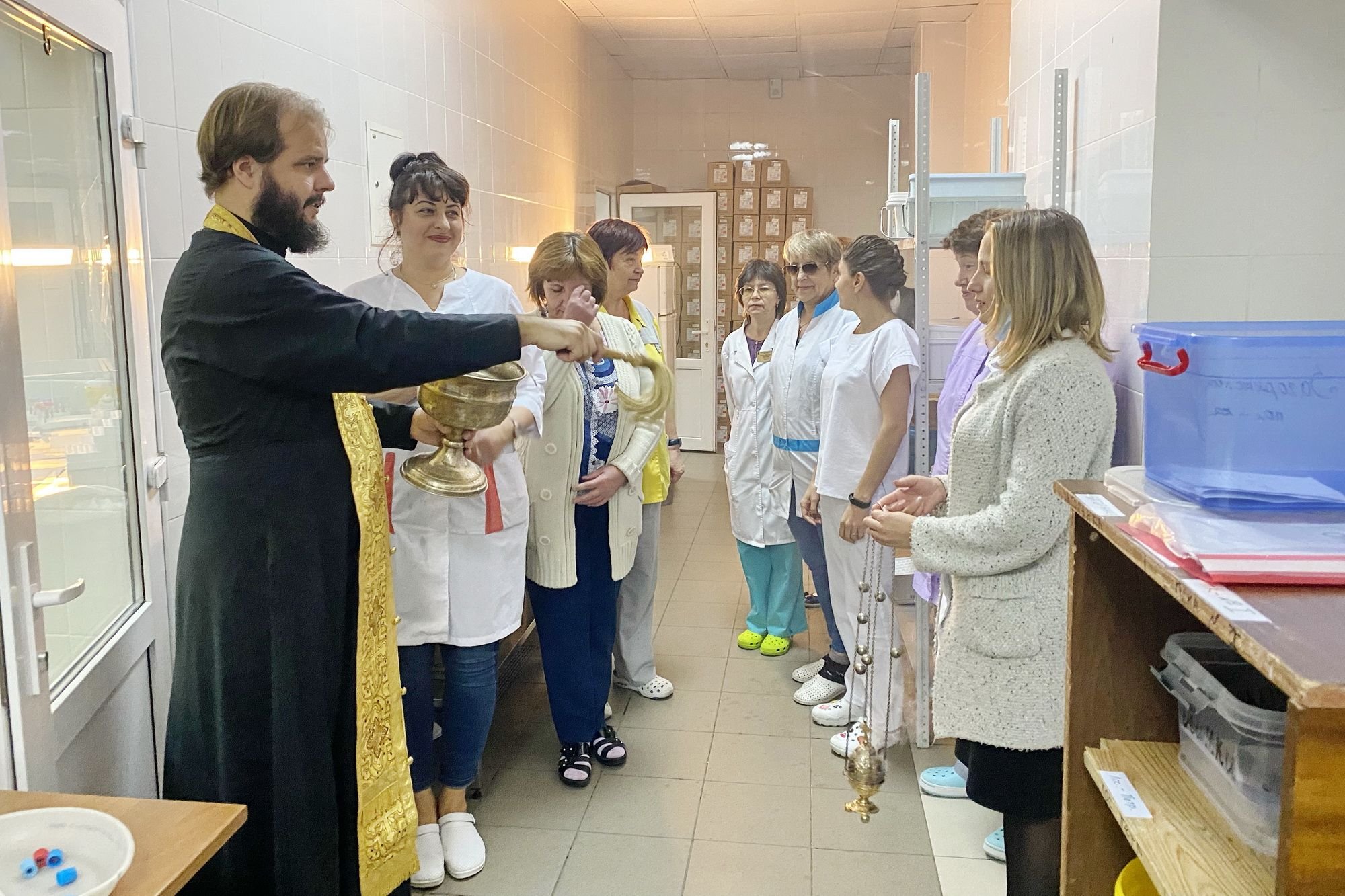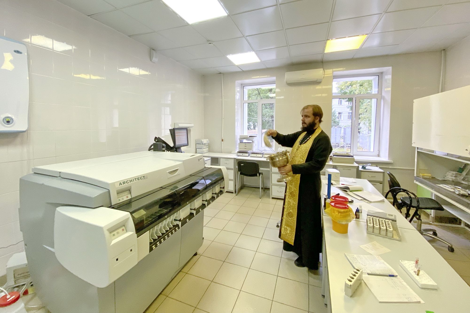 16 сентября клирик Троицкого собора г. Щелково священник Евгений Трушин совершил чин освящения отделения клинико-диагностической лаборатории Щёлковской областной больницы.