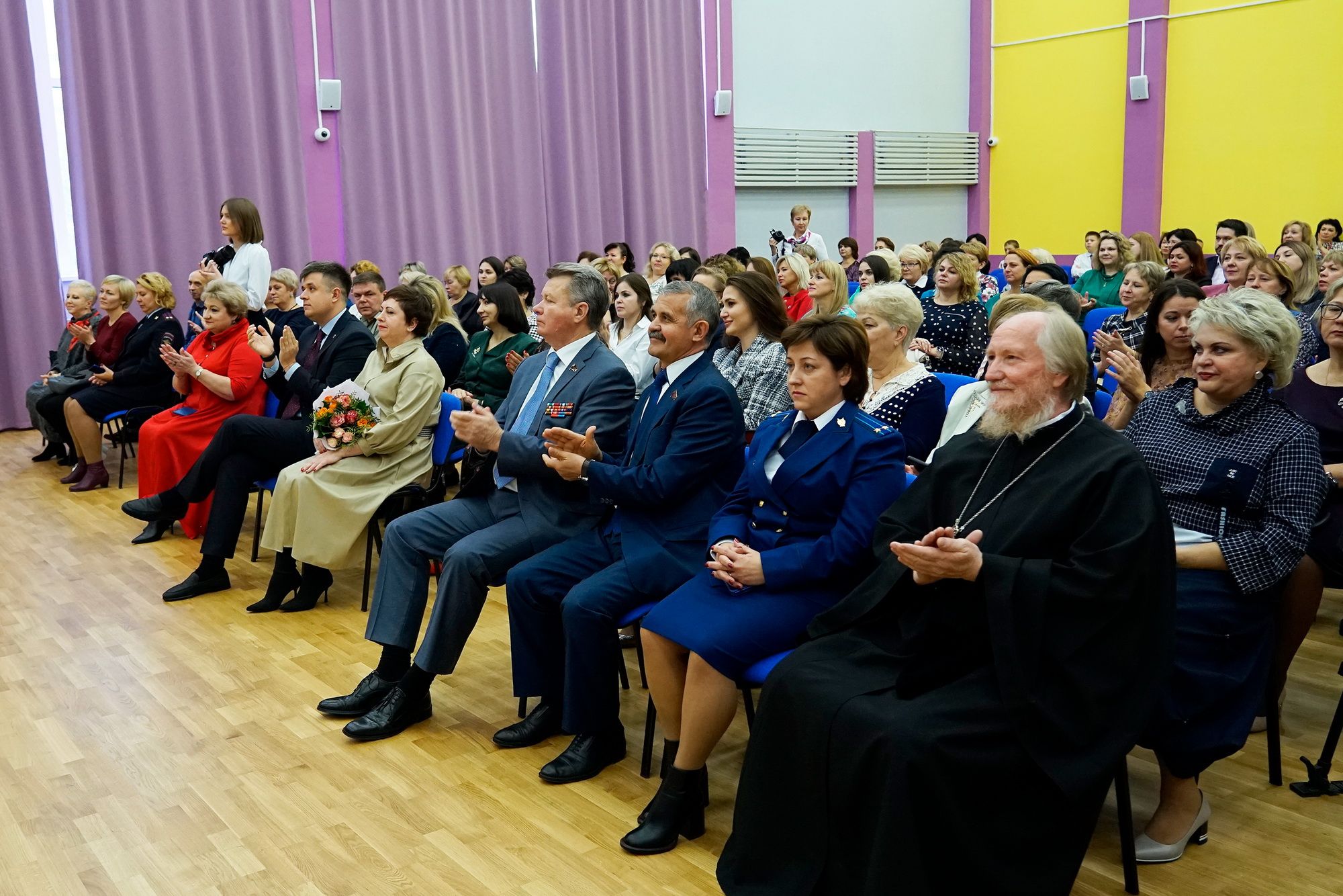 С профессиональным праздником педагогов поздравили заместитель главы администрации городского округа Щелково Дмитрий Толмачев, депутат Государственной Думы Александр Толмачев, депутаты Московской областной думы Владимир Шапкин и Николай Черкасов, председатель комитета по образованию городского округа Щелково Ольга Кудряшова и благочинный Щелковского церковного округа протоиерей Андрей Ковальчук.