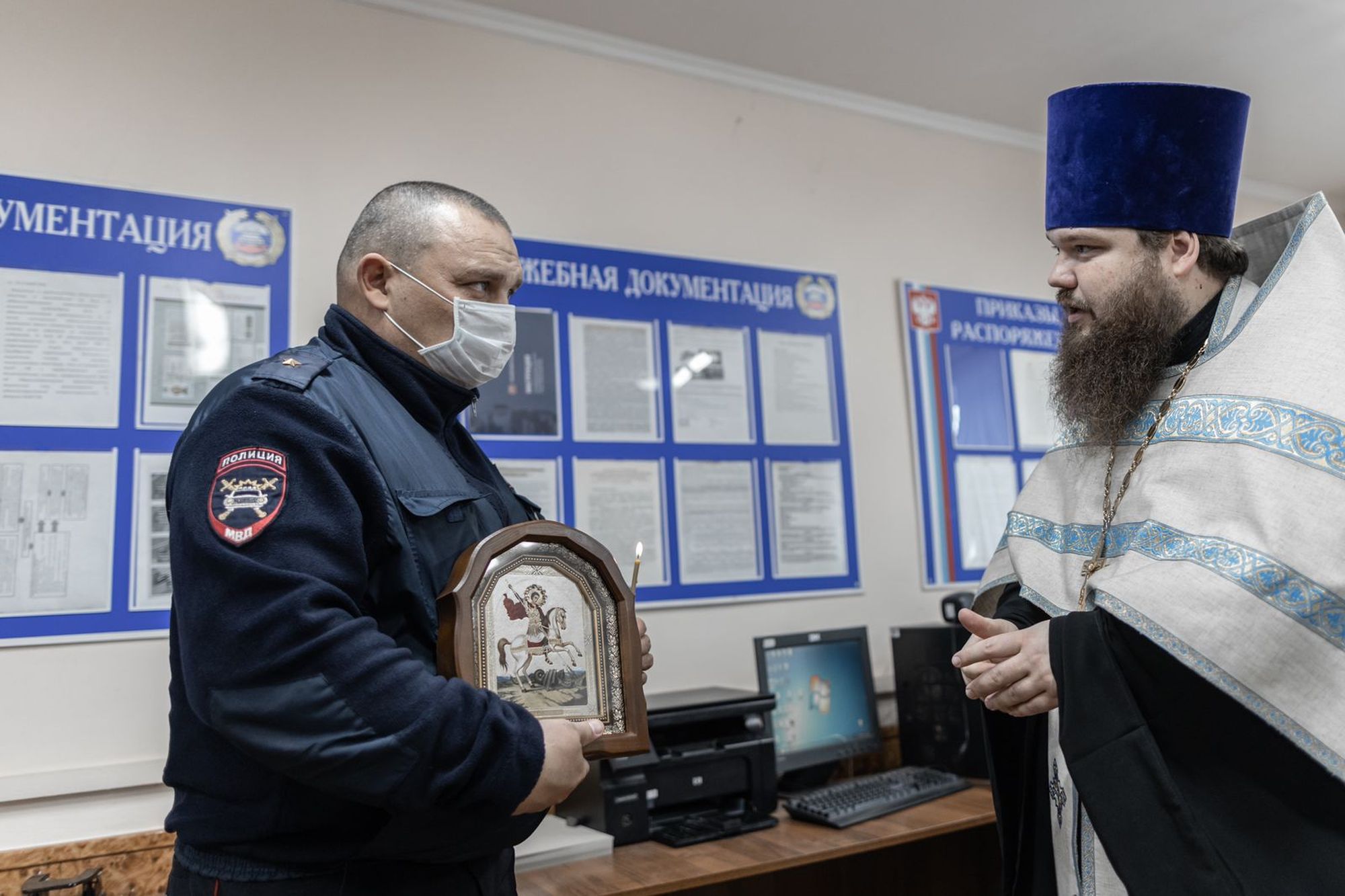 22 октября благочинный церквей Павлово-Посадского округа священник Александр Анохин совершил освящение отдела ГИБДД МО МВД России «Павлово-Посадский» и передал его начальнику майору полиции Е. В. Круглову в благословение икону великомученика Георгия Победоносца.