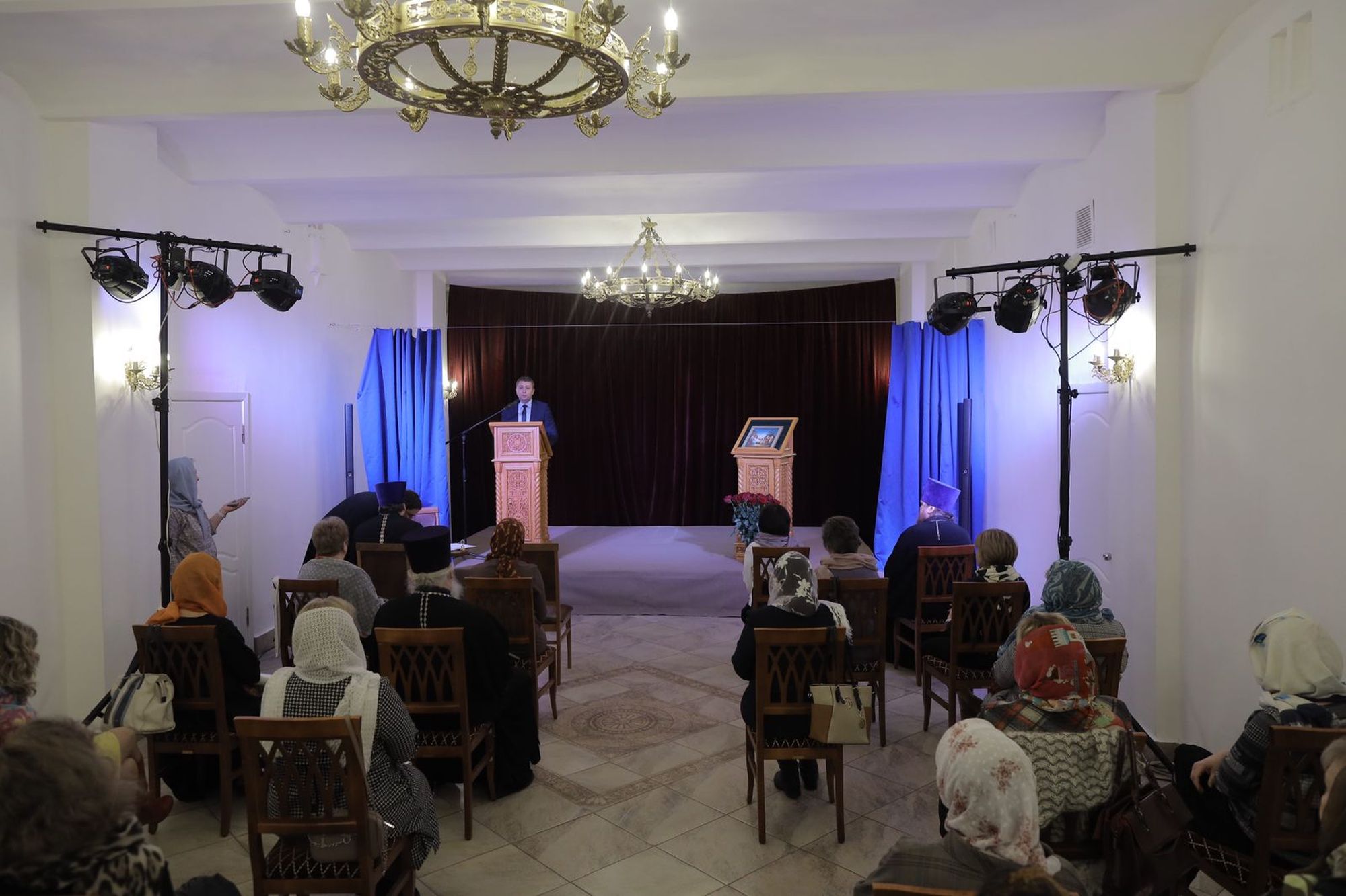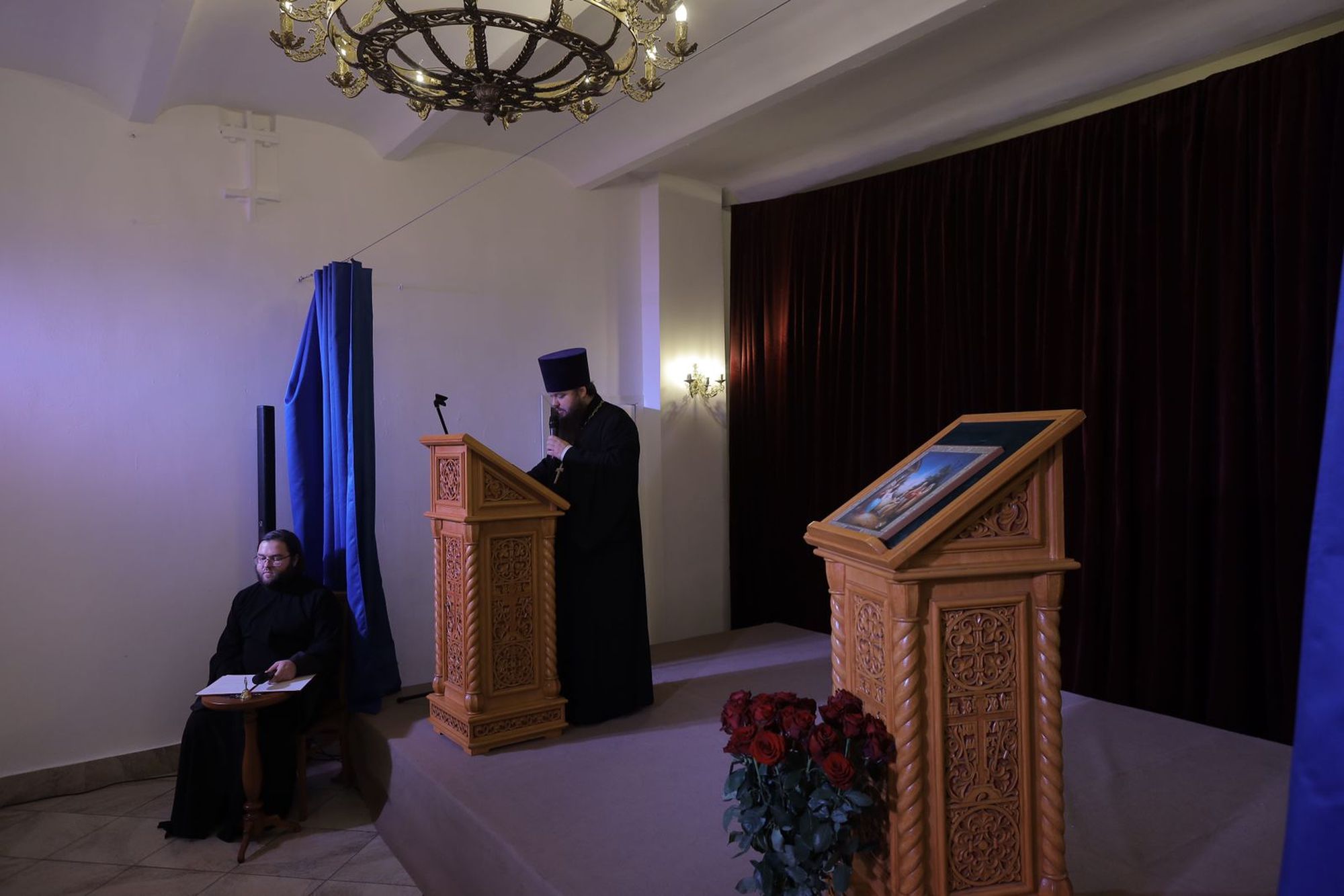 Гостям был представлен спектакль по произведению А. С. Пушкина «Скупой рыцарь», подготовленный учениками театральной студии воскресной школы при Казанском храме города Павловский Посад.