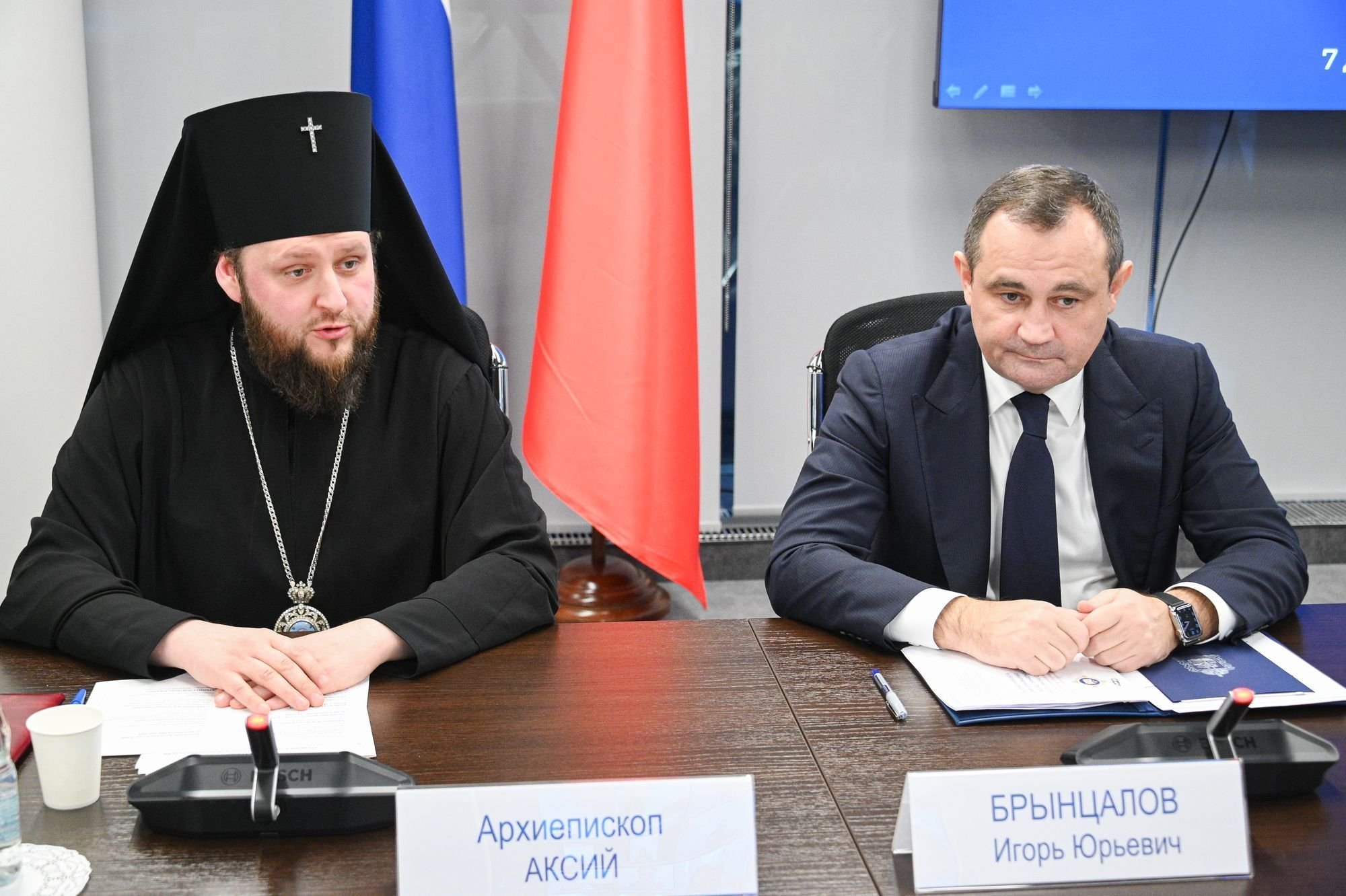 Далее с докладами выступили: архиепископ Подольский и Люберецкий Аксий, депутат Государственной Думы Федерального Собрания Российской Федерации В.В. Фомичев, председатель Комитета по образованию, культуре, науке, туризму, спорту и молодежной политике Московской областной Думы Л.Р. Самединова, депутат Московской областной Думы Л.Н. Антонова, и президент Государственного социально-гуманитарного университета А.Б. Мазуров.