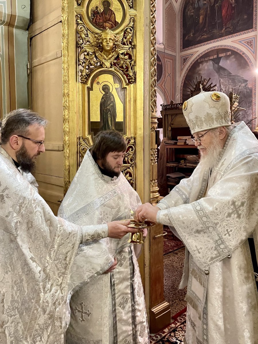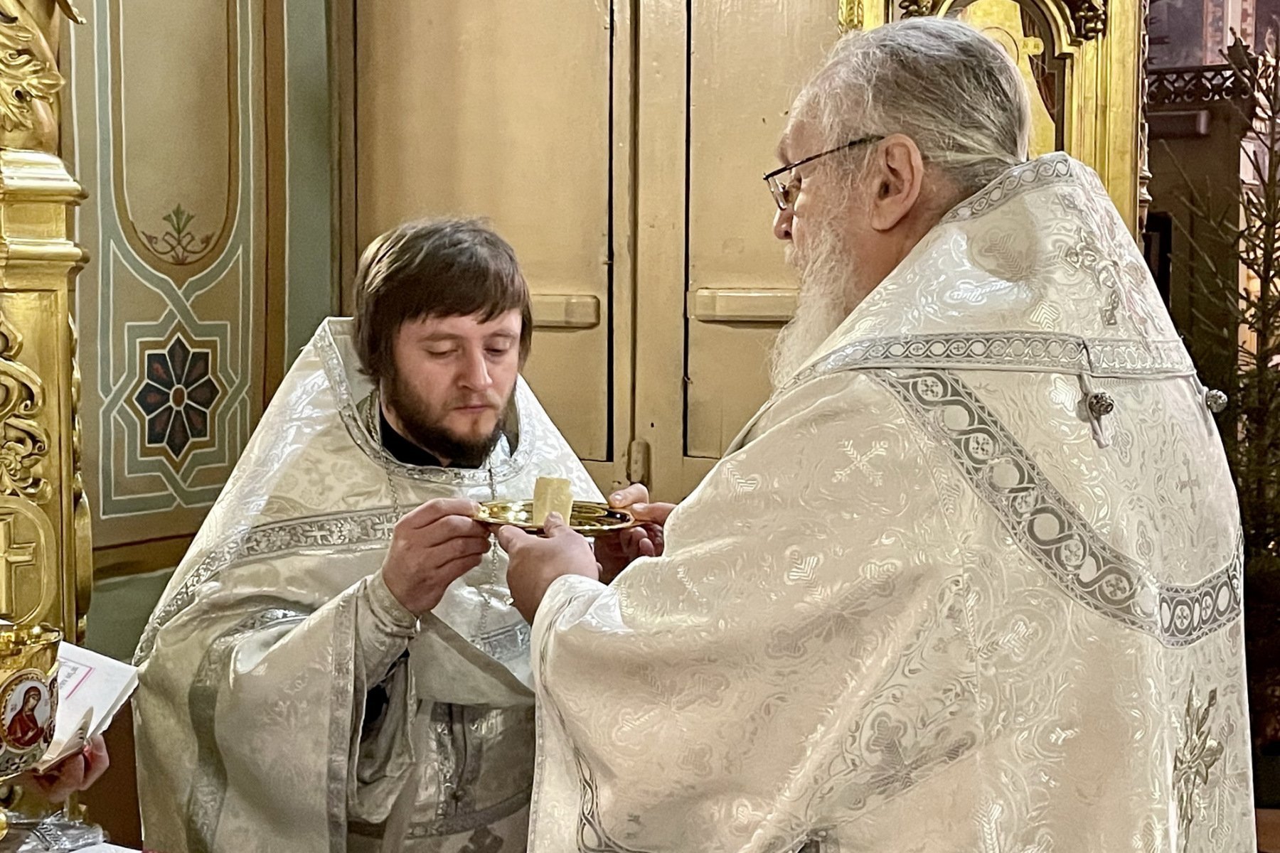 За богослужением епископ Николай рукоположил клирика храма диакона Андрея Беленкова во пресвитера.
