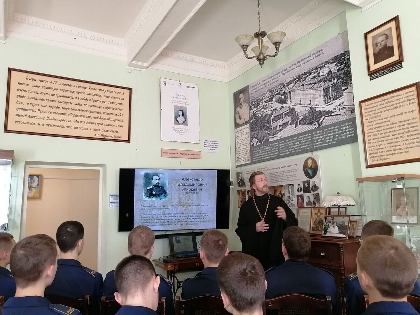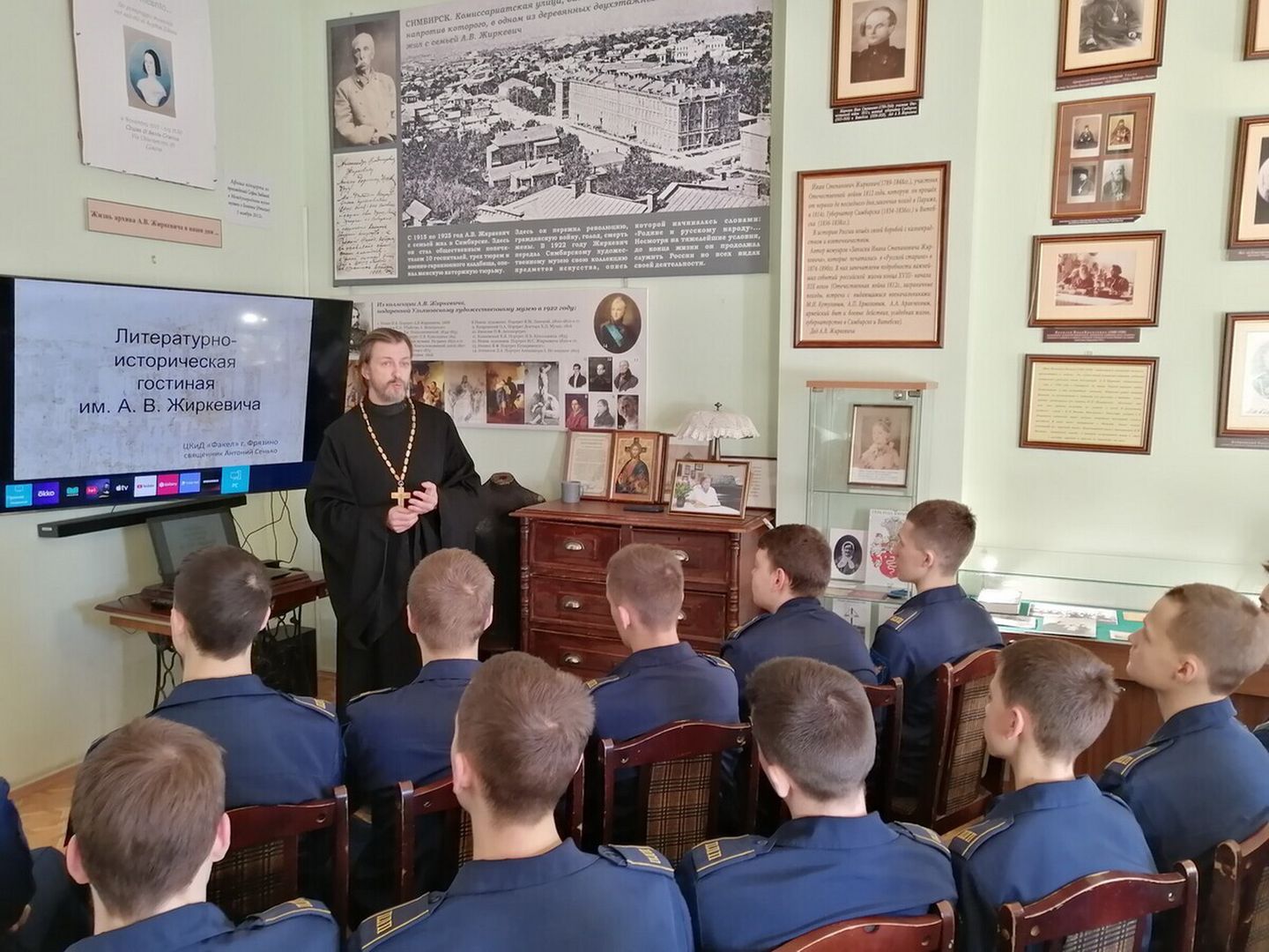 В рамках цикла «Служение Отечеству из века в век» настоятель Сергиевского храма села Трубино священник Антоний Сенько рассказал гостям о жизни русского поэта, мемуариста, публициста, военного юриста, коллекционера и общественного деятеля А.В. Жиркевича.