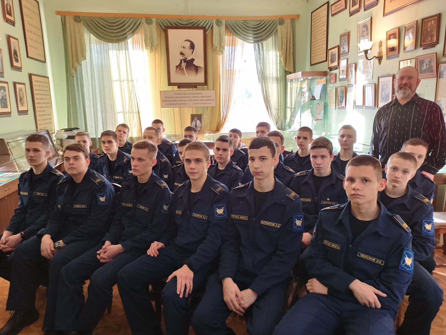 18 марта кадеты взвода 9-1 кадетской школы-интерната с первоначальной летной подготовкой имени трижды Героя Советского Союза А.И. Покрышкина в сопровождении классного руководителя А.Г. Важенина посетили Историко-литературную гостиную имени А.В. Жиркевича в центре культуры и досуга «Факел» г. Фрязино.