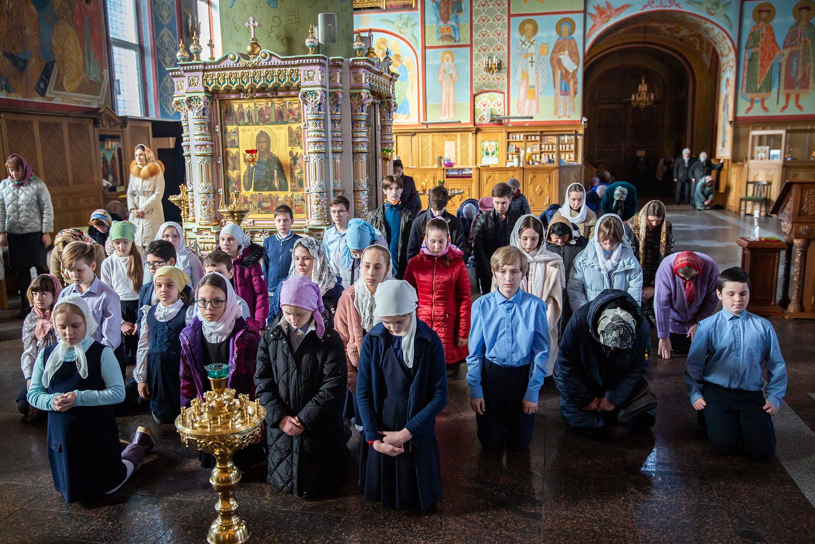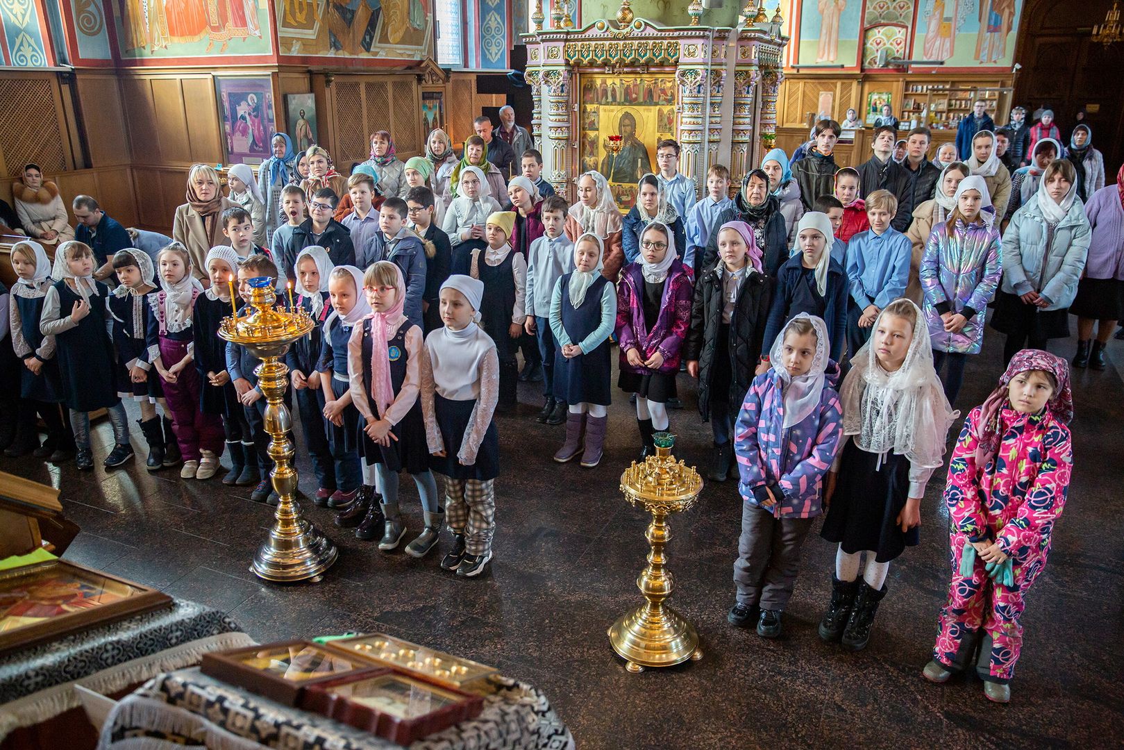 За Литургией молились преподаватели и учащиеся Православной Алексиевской гимназии при Троицком соборе г. Щёлково, многие из которых в этот день причастились Святых Христовых Таин.