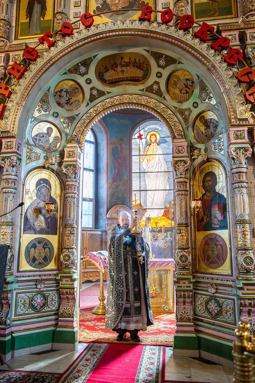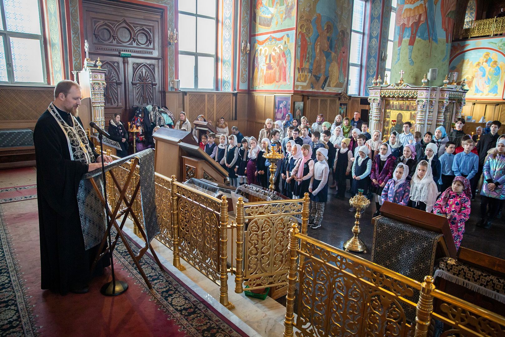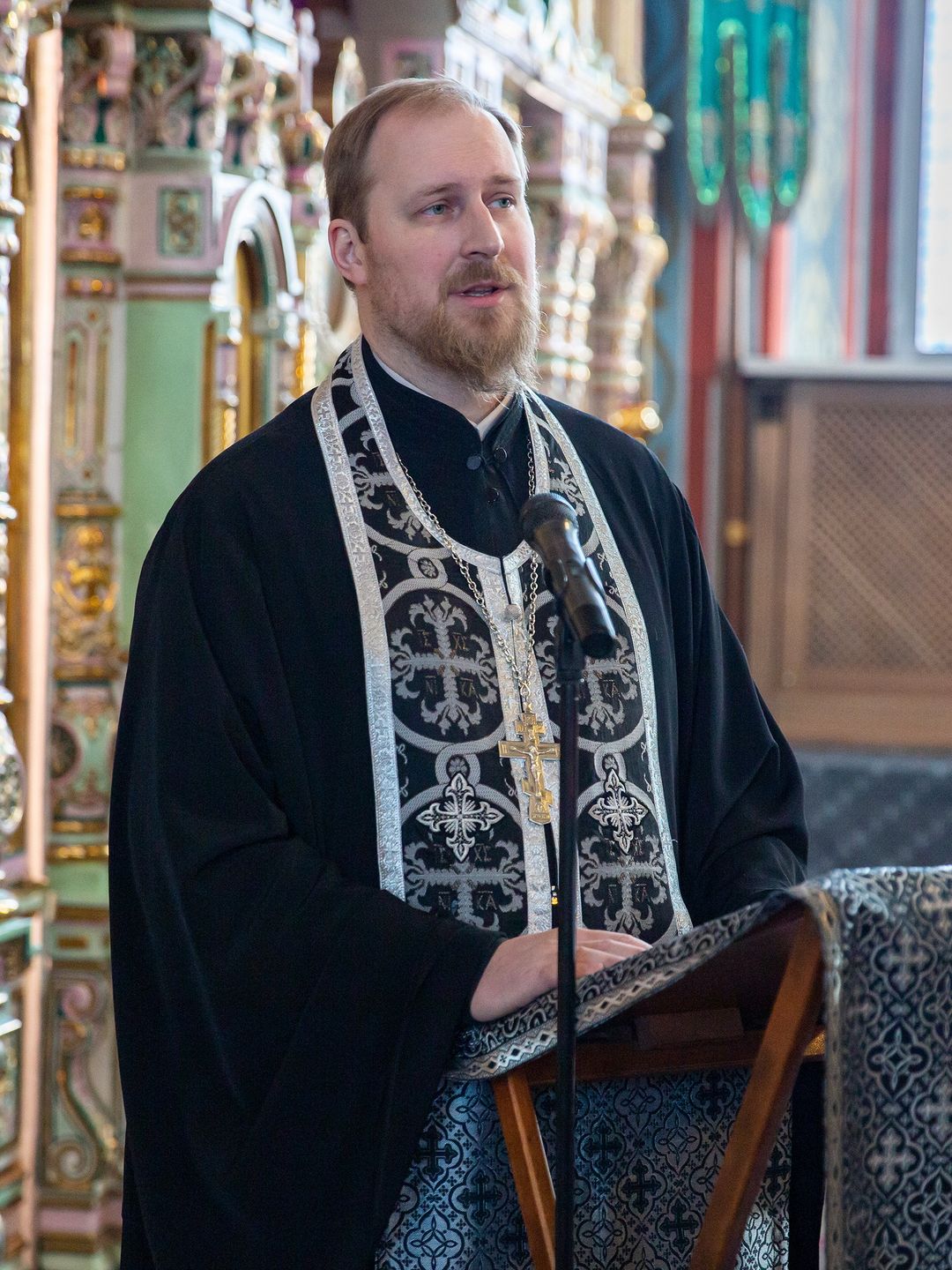 В ходе богослужения клирик собора священник Павел Чекалин обращался к молящимся с комментариями о смысле, содержании, истории и значении молитвословий и священнодействий великопостной службы.